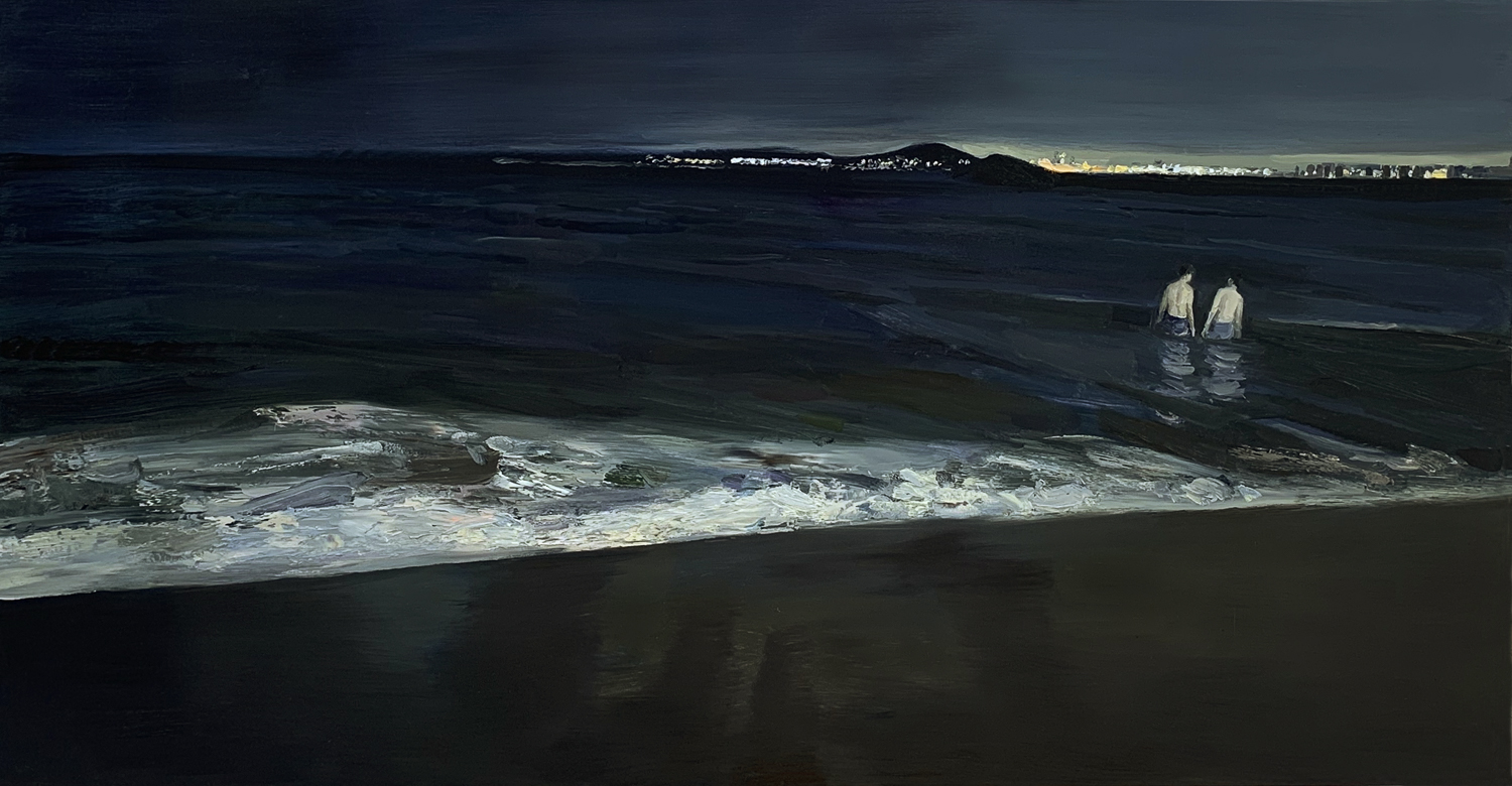 徐志广《夜的海》布面油画,100×190cm,2020年