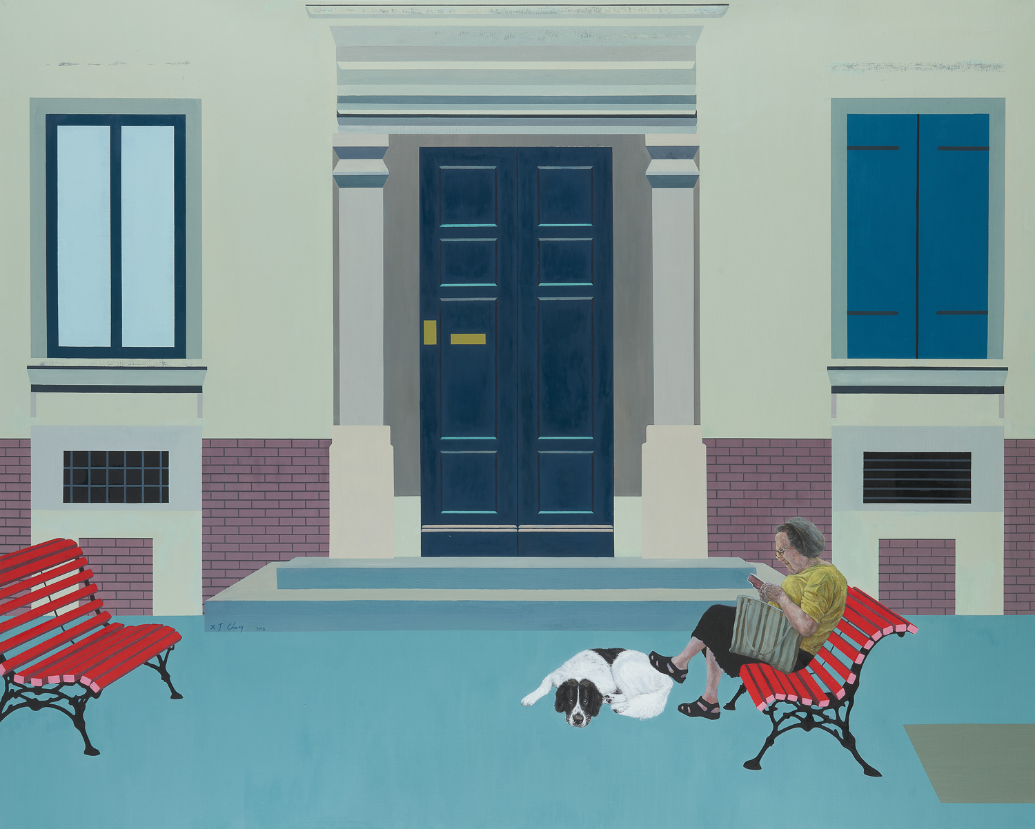布雷拉美术馆休息区-黄子怿-油画-100cm×100cm-2020-肖像
