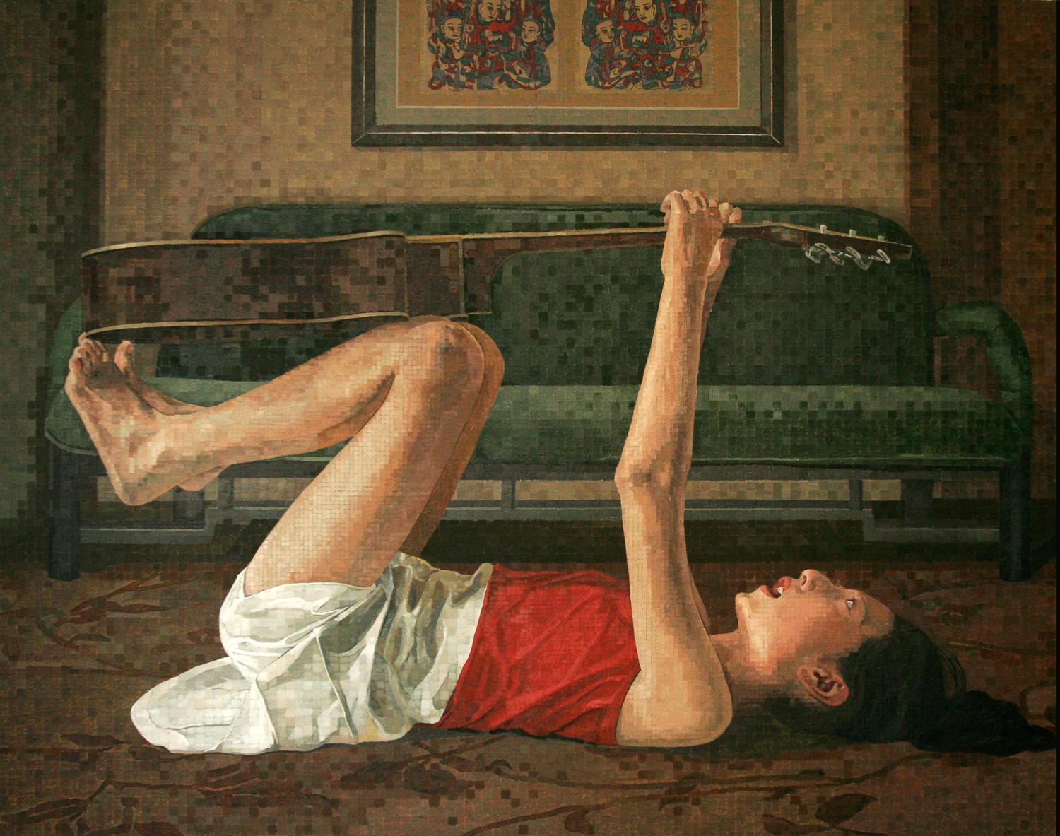 吉他和少女-刘翠萍-油画-95cmx120cm-2016-人体
