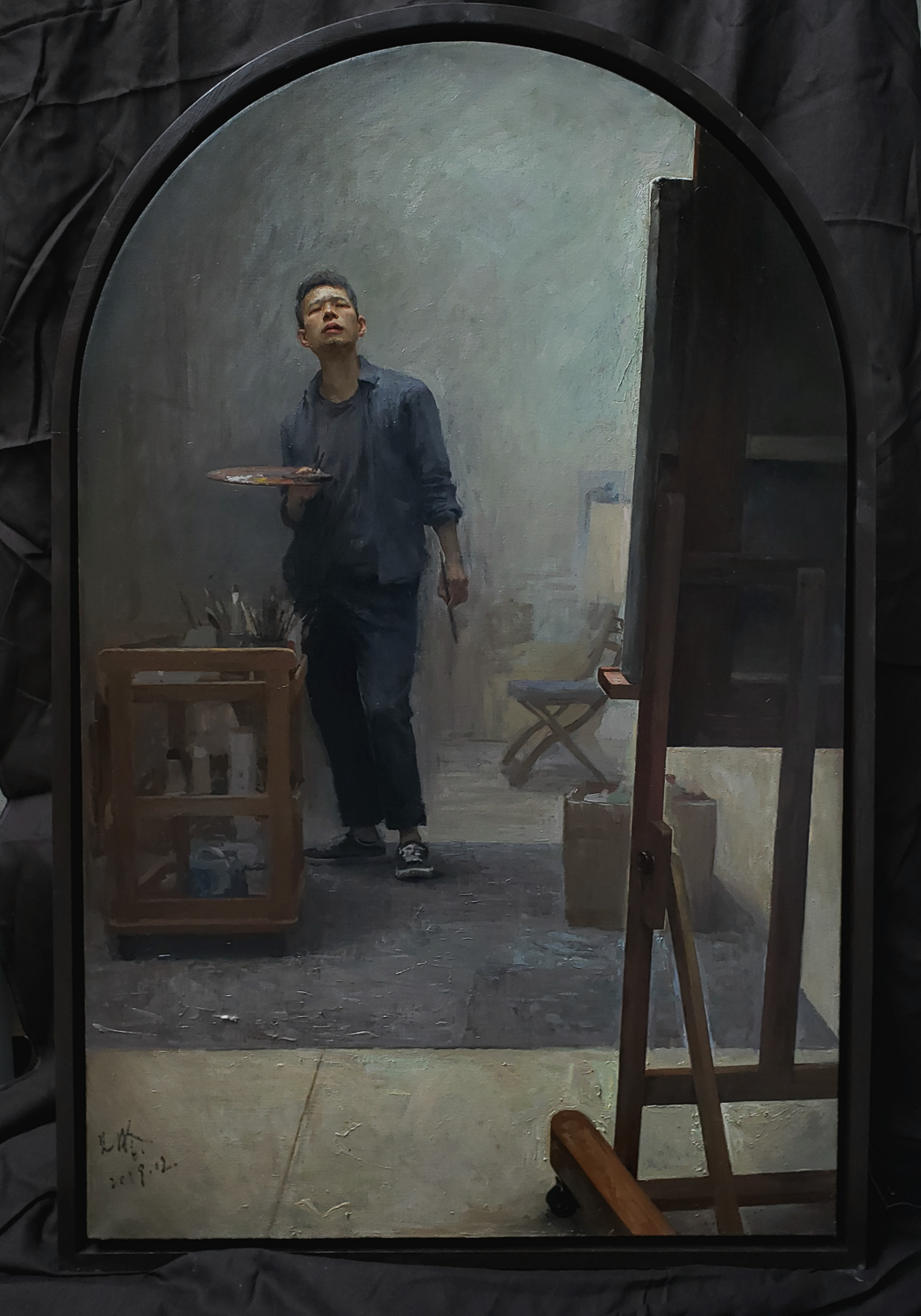 在工作室的自画像-黄见晗-油画-140x80cm-2019年12月-肖像