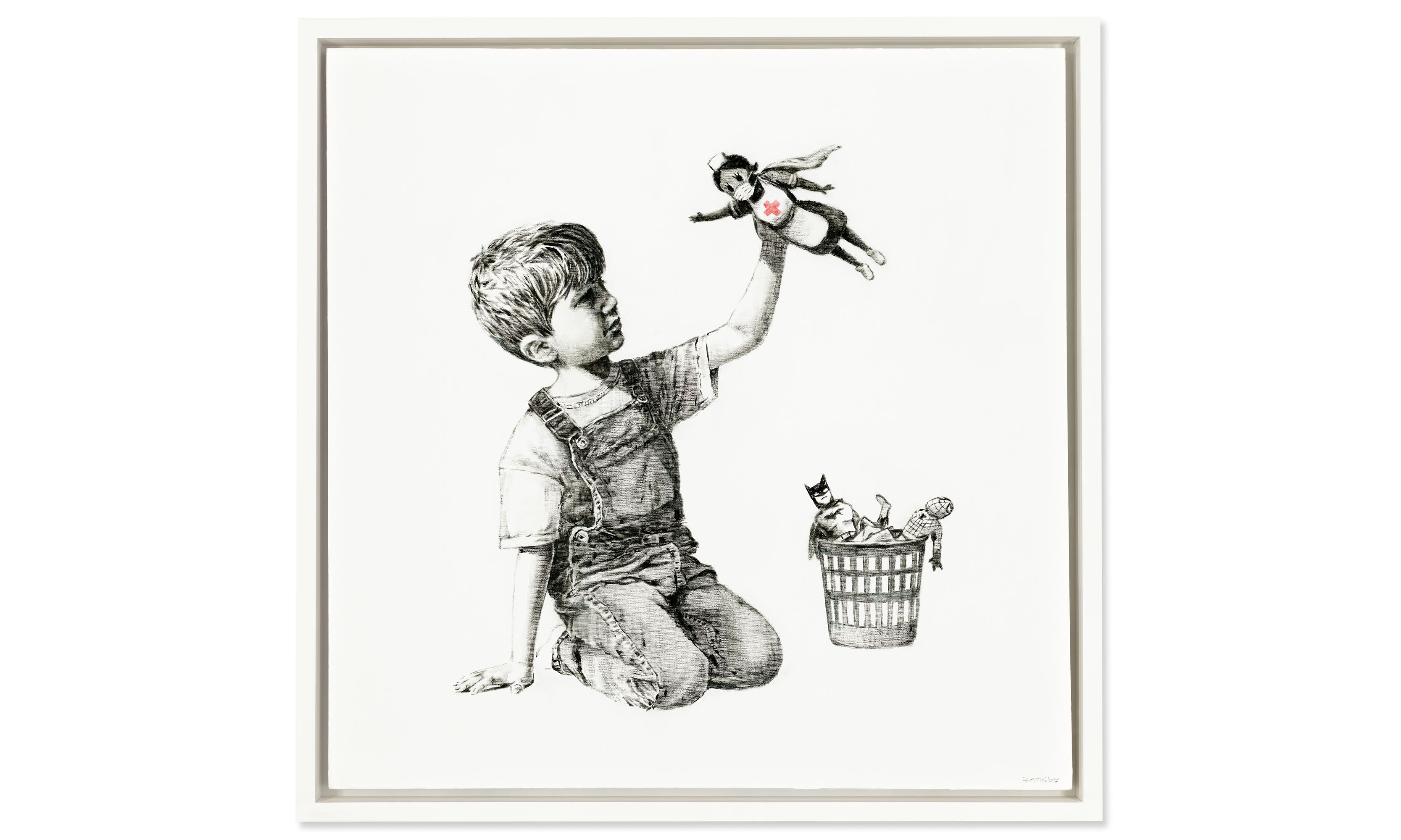 2020 年 5 月,Banksy 所创作的名为《Game Changer》的画作,出现在南安普顿大学医院,表达对于新冠疫情期间医护人员的感谢。日前,这幅画作在伦敦佳士得拍卖会上以创纪录的 1,440 万英镑成交,而其预计的估价为 250 万-350 万英镑。消息称,拍卖所得全部收益将由艺术家捐赠给帮助支持英国各地的健康组织和慈善机构,以加强 NHS(国民医疗服务体系,是英国以下四大公营医疗系统的统称)提供的护理和治疗,而佳士得拍卖行也将把溢价的大部分收益捐献给这些组织。