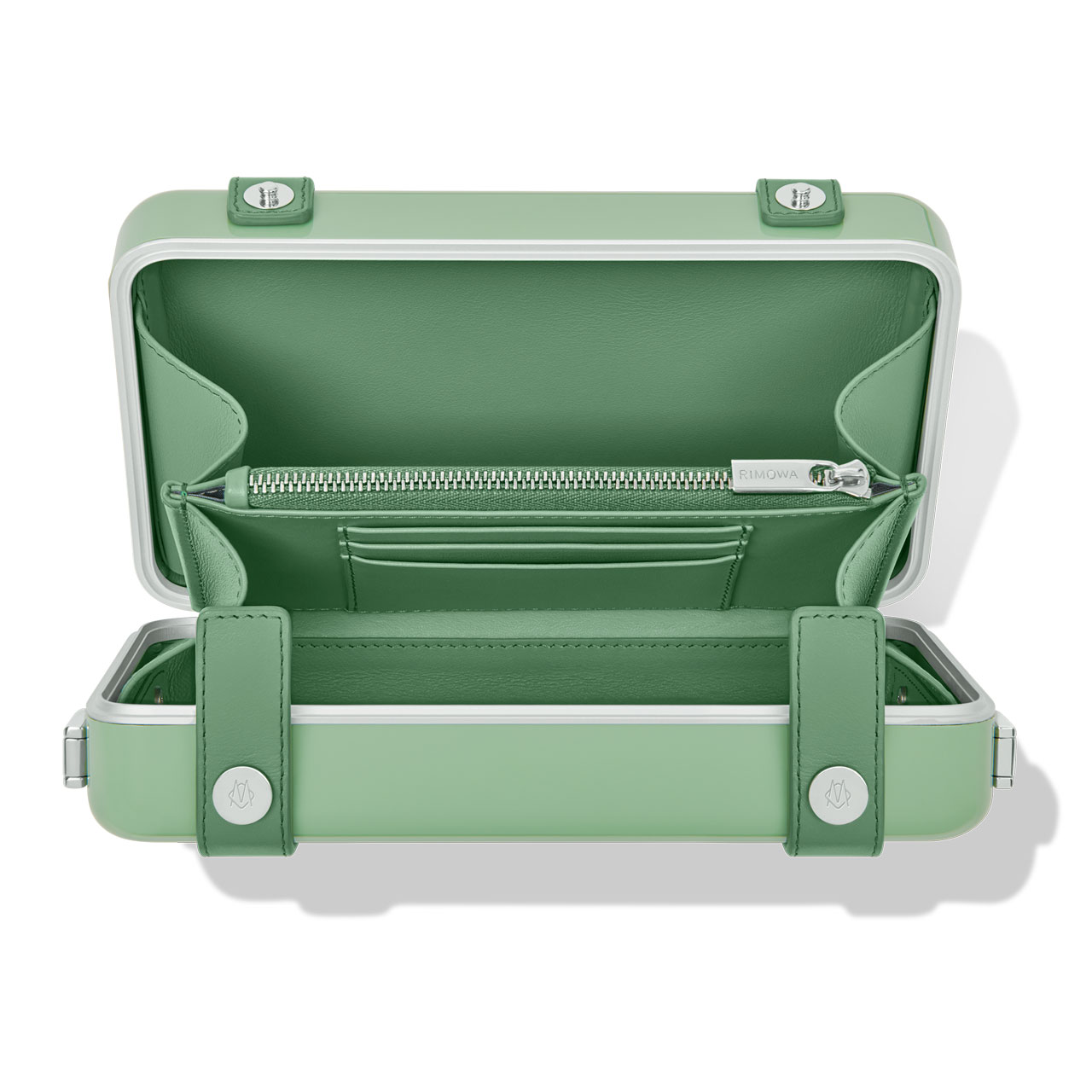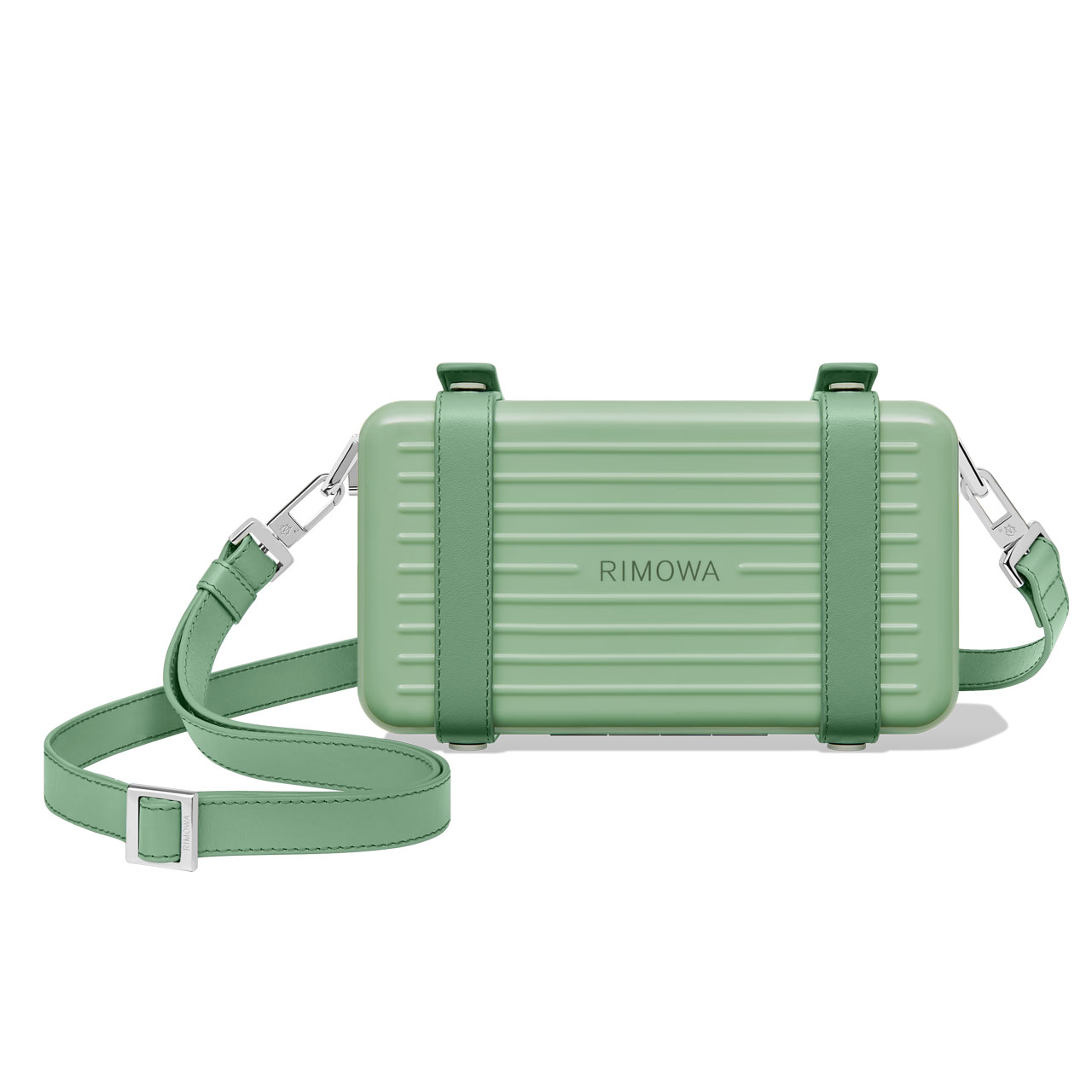 新款配色的 RIMOWA Essential 系列的把手、拉链、铭牌和滚轮底托都进行了精心匹配,统一成单色外观。为了丰富穿搭,RIMOWA 还推出了几件同款配色的季节性配饰。RIMOWA Personal 是一款斜挎包,运用 Essential 同款沟槽式设计聚碳酸酯材料制成,现已有青竹绿色可选。适用于 iPhone 12 Pro 和 Pro Max 的香芒橙色和青竹绿色手机保护壳也将上市。