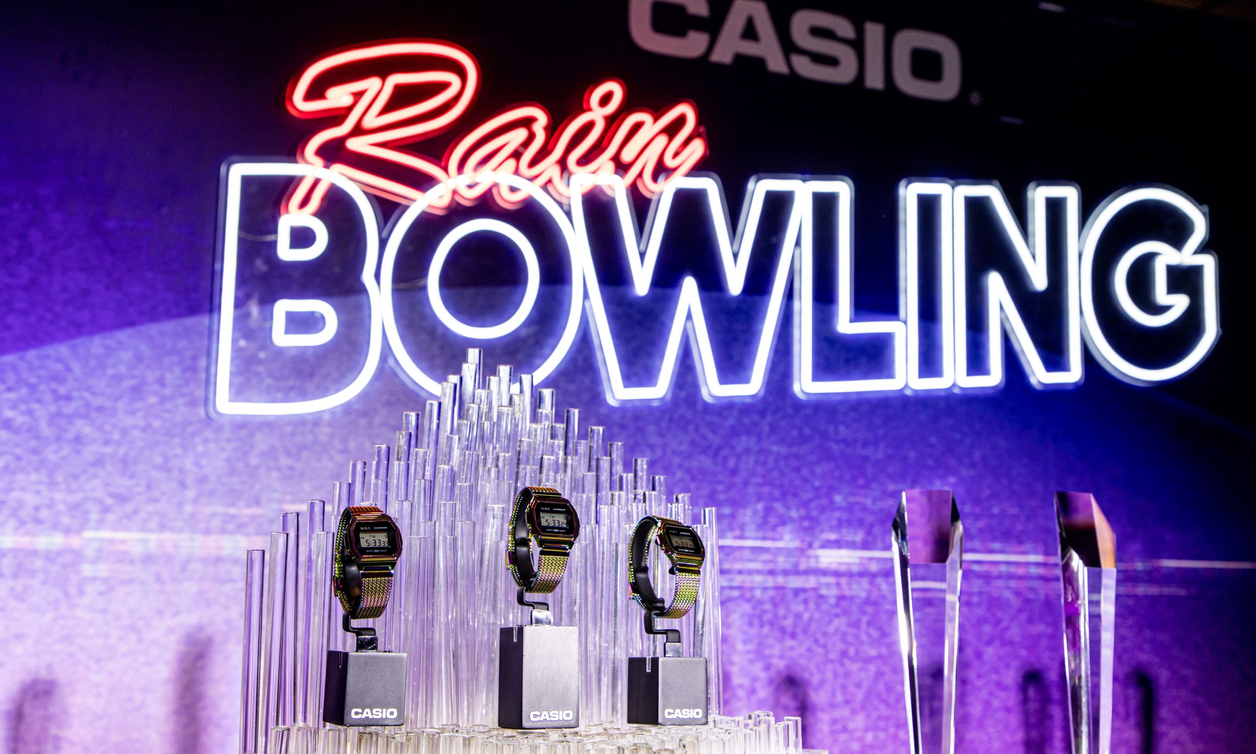 为预热 CASIO Vintage A1000 Premium 系列新款腕表,CASIO 特别于上海欧登保龄球馆,举办「RAINBOWLING RETRO NIGHT」发售派对。派对以全新 A1000PRW-1PR「RAINBOW」彩虹配色腕表以及特别打造的「复古游戏礼盒」为灵感,营造上世纪 80 、90 年代的复古既视感。