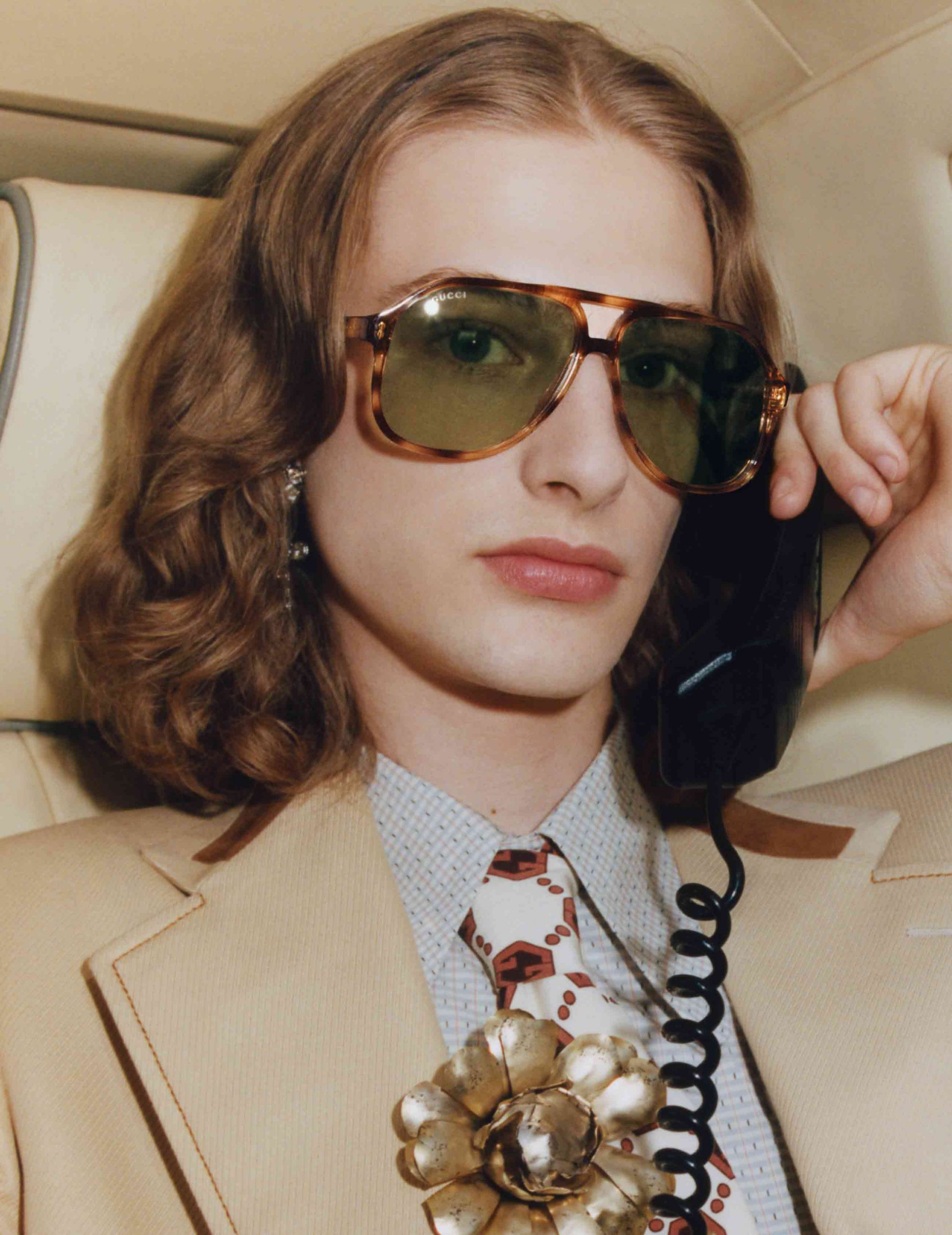 全新眼镜系列的设计灵感跨越不同时代,将复古魅力与现代精致巧妙融为一体。具有宽大轮廓和精致廓形的镜框,采用厚刻面醋酸纤维和带有闪亮饰面的精致金属制成。精致的耳链和饰件打造充满个性的装饰效果,双 G 互扣标识和心形造型等精美吊饰的点缀同样别具一格。全新设计参考了 80 和 90 年代的风格,阳刚的飞行员镜框配以独特的双鼻梁细节和装饰铆钉,尽显经典魅力。
