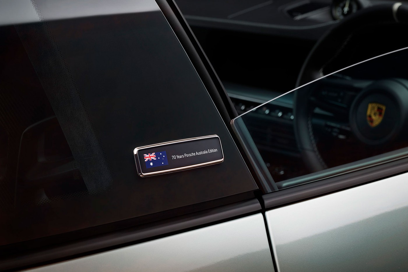 Porsche 为庆祝于澳洲地区成立业务 70 周年,今回特地带来一款 911 GT3 别注车型庆祝,此车是车厂首次针对特定市场推出限定 911 GT 车款,整体采用 1951 年登陆澳洲的 Porsche 356 同款 Silver Grey Metallic 车漆涂装,搭配独特铭牌、国旗、Madraskaro 格纹织物与真皮 Graphite Blue 桶形座椅、定制门槛等细节,并提供手排或 PDK 两种变速箱选择。动力部分配备 4.0 升直列六缸自然进气引擎,具备 500 匹马力的强悍性能。全车一共仅限量发行 25 辆,目前价格已经上涨到 $355,000 美元以上。