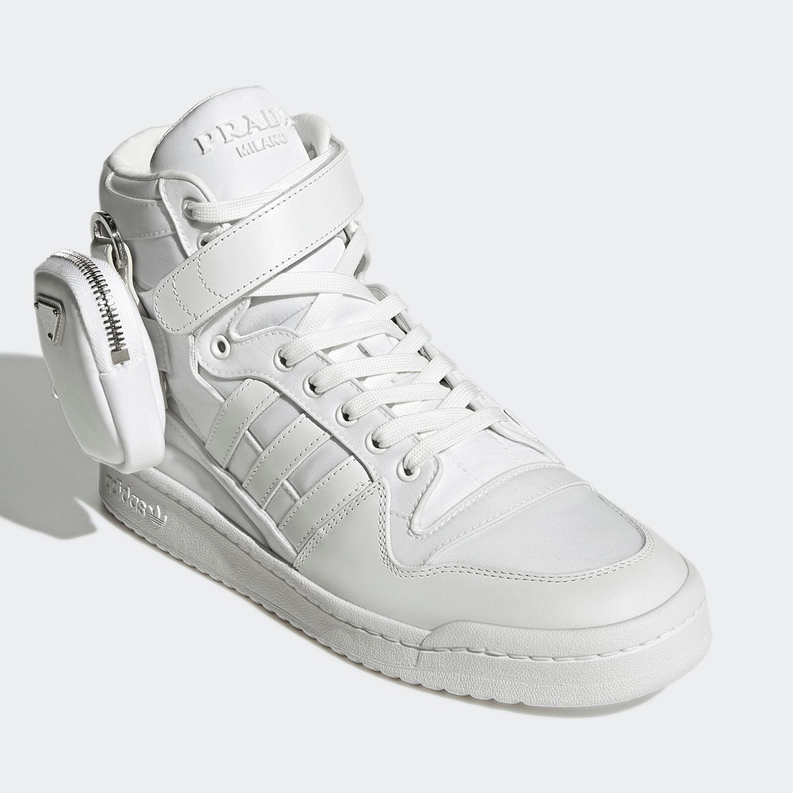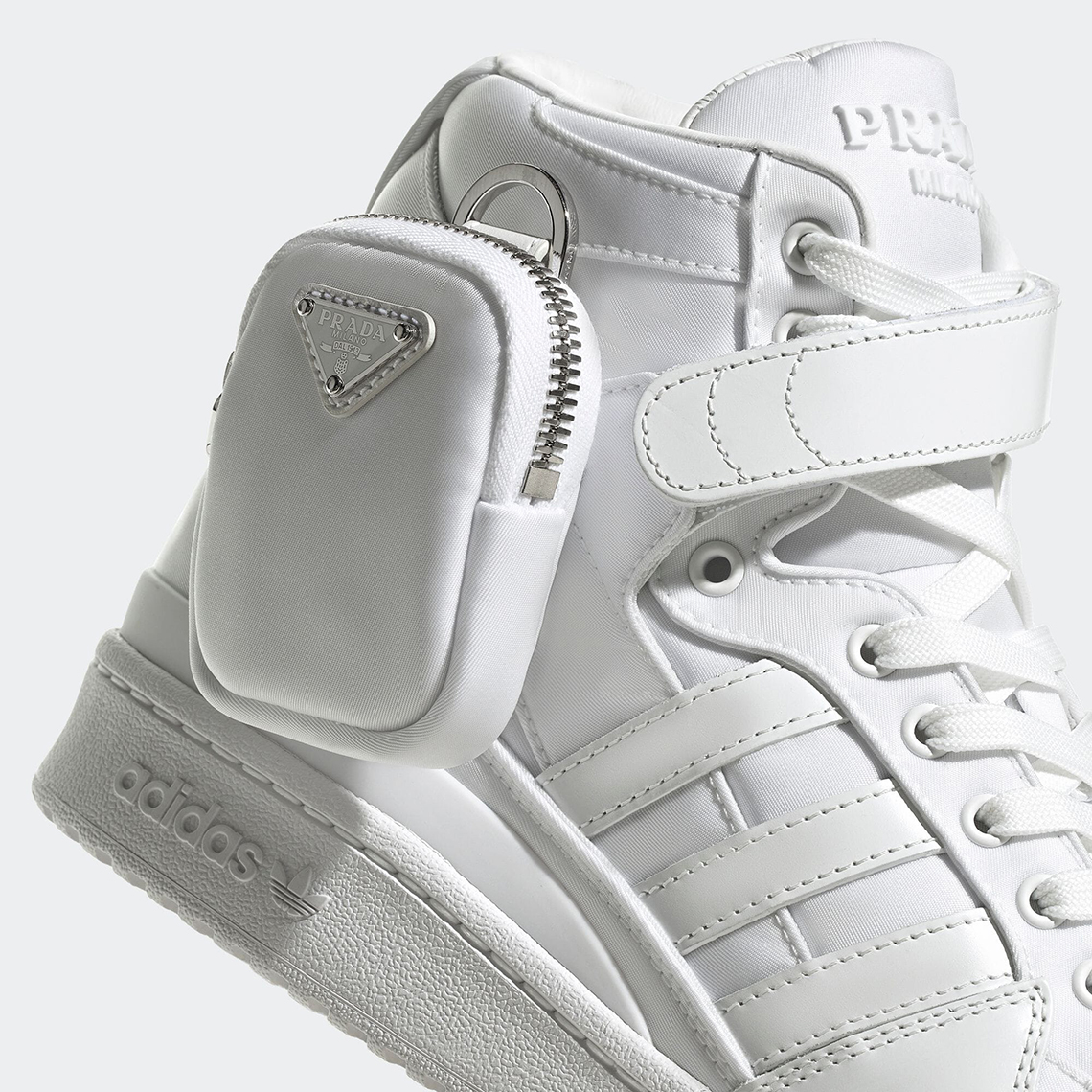 自 2020 年 PRADA 与 adidas 首次合作发布以来,双方的合作关系持续至今,时隔两年再度携手以四种方式诠释鞋款 adidas Forum Re-Nylon。延续了此前 Superstar 搭载 PRADA 热门小尼龙包的设计,并且与本次鞋面采用的「Re-Nylon」环保尼龙面料相呼应,同时表达了对 PRADA 经典尼龙包的致敬。可拆卸的设计也为整体增添了不少实用性和可玩性。本次共推出 Forum High 和 Low 两种鞋型,每款均有黑白两款配色可供选择。原定将于 1 月 13 日正式发售,具体发售细则可关注后续更新。