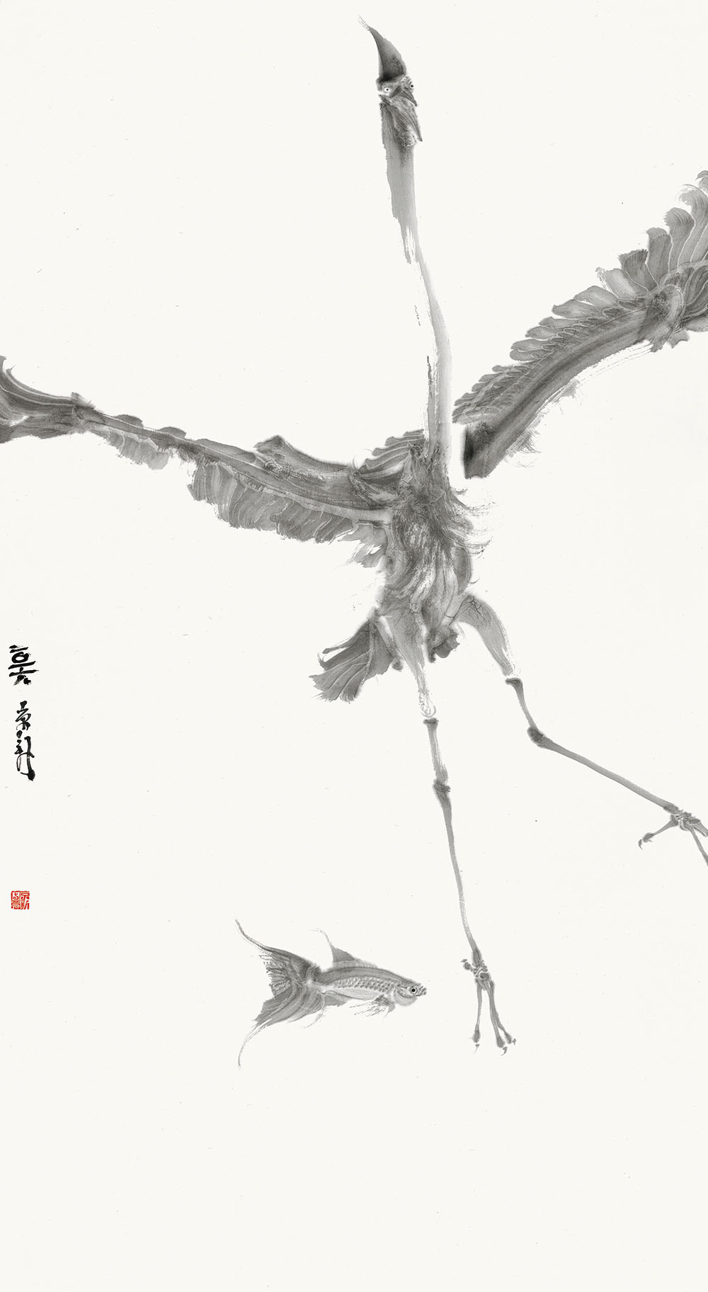 秦修平 大鱼2017-3 纸本水墨 97cmX360cm 2017年