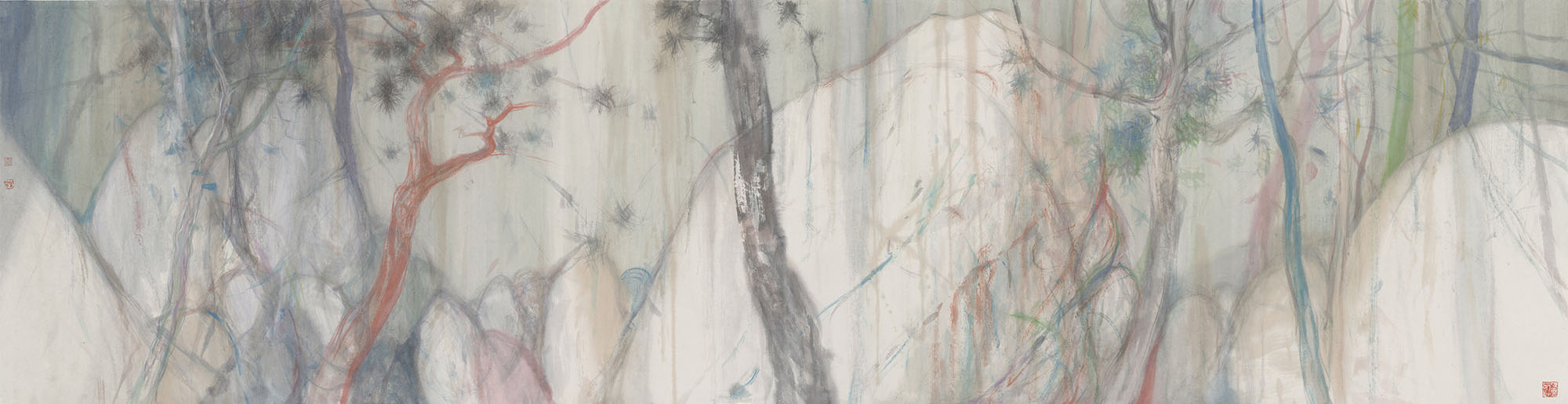 张方白 《虹2016-1》250x800cm 布面油画 2016从艺术的角度看,20世纪肇始于西方的“现代主义”运动,在1980年代以“’85新潮”为标杆,在中国本土“改革”与“开放”的转型中,冲击并改变了中国这个“文化体”中的艺术生态,原本被艺术界认为僵化的艺术获得了新鲜的血液和新的“质料”,可以去构成“新的艺术”的元素和方法,而这种“新”不同于西方“先锋派”之“为新而新”,尽管当时是以粗制和激进的方式开始一种“引入式现代化”的文化启动模式,但是随着具体社会语境的变迁,当这一进程展开至一定程度时,再完成了“启动”之后,一种“内在化演进”的逻辑力量开始生成,这种逻辑开始变得有力,但是在本土与全球之间,存在一种“关系”,既有相互制衡,亦存在相互激发。此处之“新”,是在“文化体”内的“老文脉”作为一种文化遗产和文化身份的内容与新进入的带有“全球化”力量和意涵的“新引入质料”,共同构成了“共时同体”的一种“存在方式”,而这种存在方式客观上构成了质料间发生“再关系”的前提和条件。“再关系”的维度也是多样化的,但是“可能性”已经存在,这种“可能性”是可以通向“启迪性”并随着实践者的实践行为找到和确立“可行通道”的。