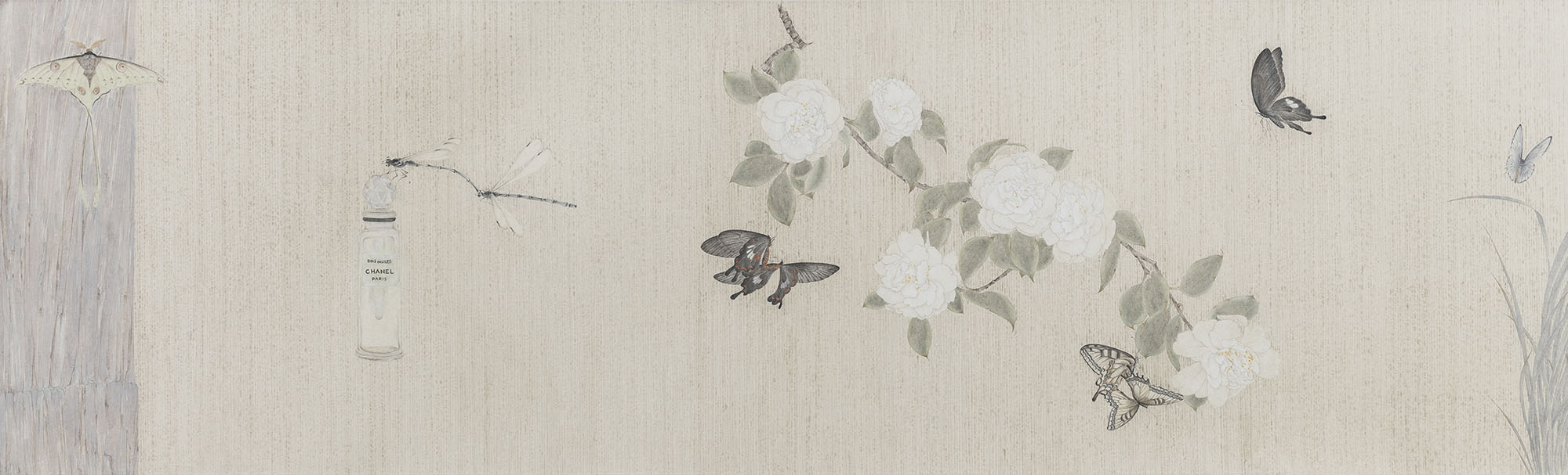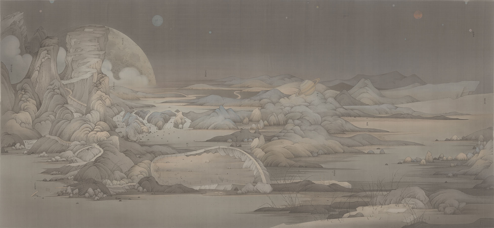 张见 桃花源 180x120cm 绢本设色 2013中国的艺术在当代形态的探索中,在新的世纪的初期,如何以一种能够生效的方式切入全球艺术的格局,形成不同“文明”在当下的“精神交际”,在以“启迪”为相互关系的立场中进行一种艺术的参与,也许“水墨的延长线”可以带来什么。