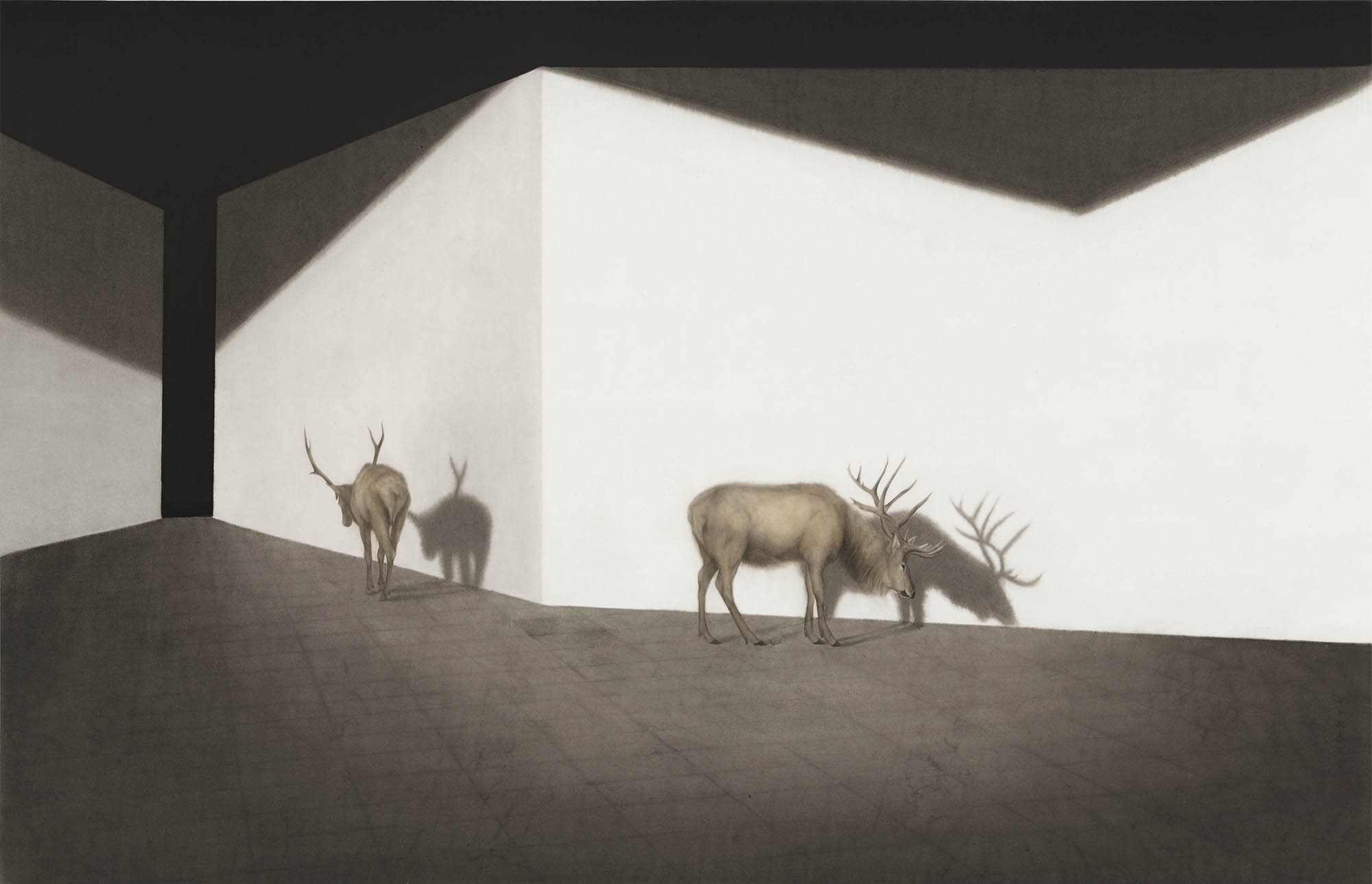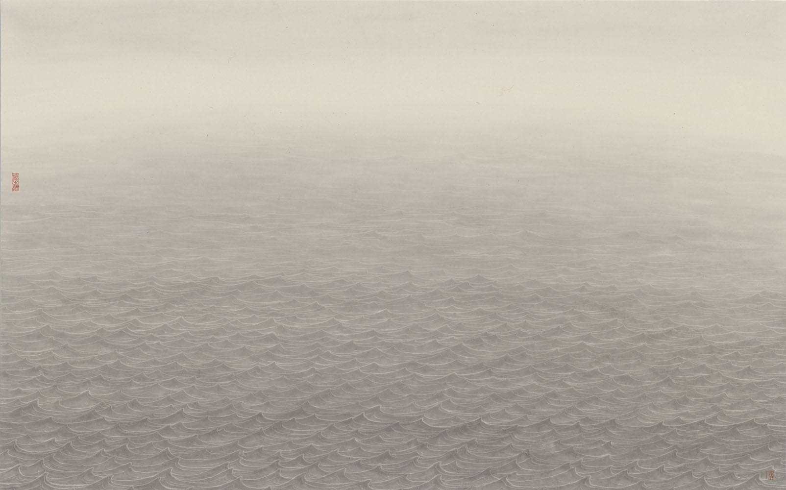 从事实看,纸本层面的“水墨”正在吸收其他绘画中的语言要素和绘画观念,同时分享古代的“元气”,在“开进”与“制衡”中,在“前引”与“后拉”的张力中开启时代的探索;而装置、架上绘画(以油画媒介为主)、影像等媒介的艺术则将此时的触须深入一种“文化的水墨”,将“水墨的质料”带入新的媒介之中,在精神的本位与全球的语言状态下形成“新的发生”。如果将这“两个向度”上的“正在发生”组合在一起,或者将它们从表象的存在置放进“发生逻辑”中阐述其线索,那么“水墨的延长线”就成了一个具有两个向度,一个事实的一种真实存在,这一存在就是“跨文化”的现实所产生的不同质料在不同方法作用下的“再关系”。