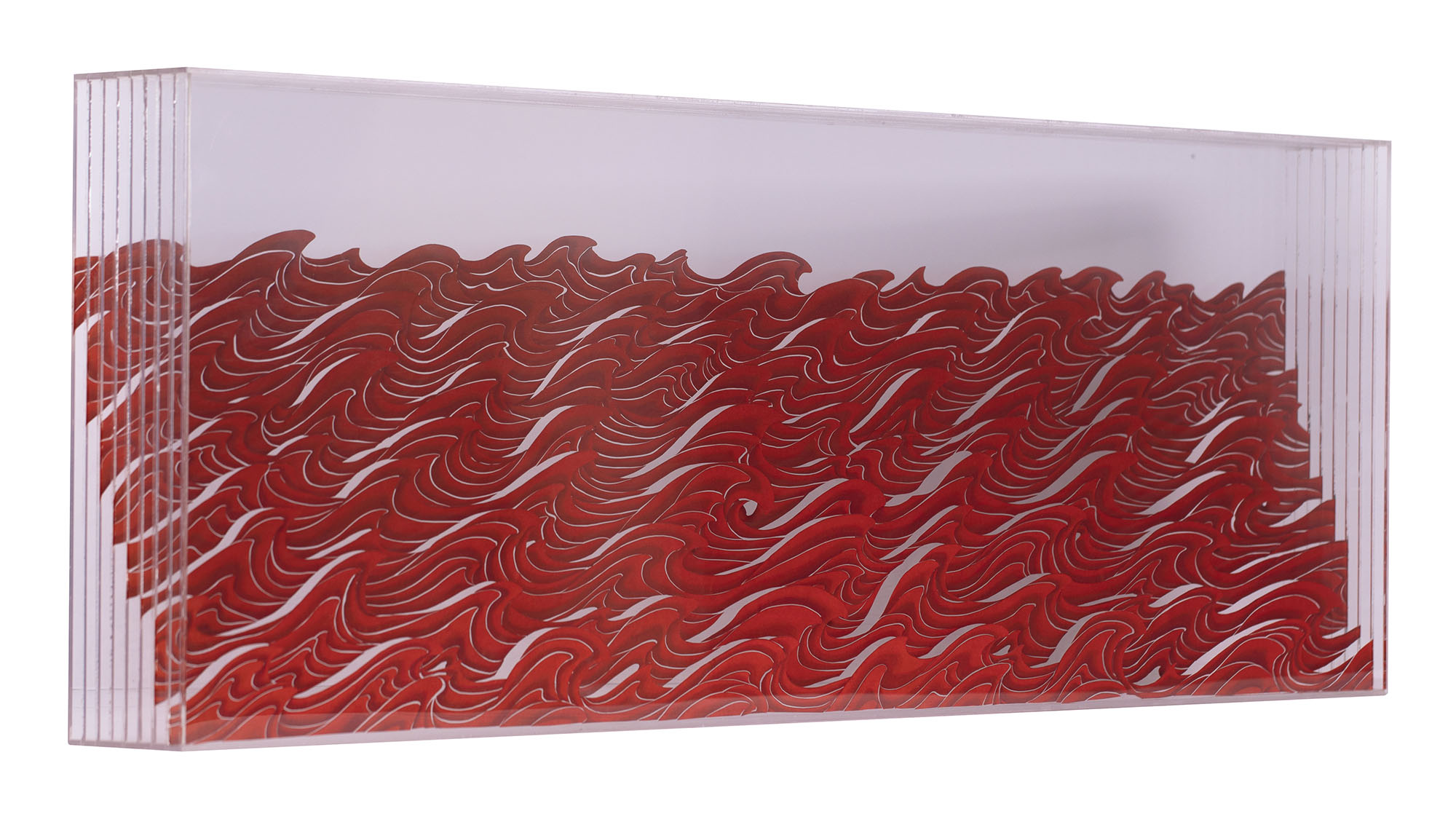 张羽:上墨20150724——对话郭熙(装置)局部宣纸、水、墨、亚克力、钢丝、影像,2015
