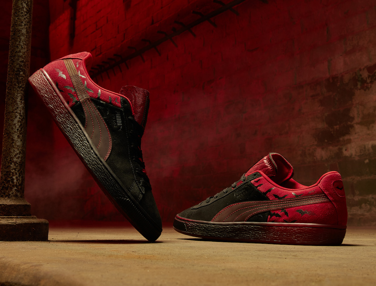 PUMA 与华纳兄弟及 DC 合作,推出了以全球性知名电影《蝙蝠侠》为主题的限量系列。该系列从电影中汲取灵感,融合了哥谭市的坚韧和蝙蝠侠的英雄气概,将文化与运动融为一体,蝙蝠侠、蝙蝠车和蝙蝠标志等元素皆被融入各类鞋款、配饰和服装。此次合作鞋履包括对经典 PUMA Suede 的改造、以角色猫女为灵感的 Fierce 2、带有红色装饰的全黑 RS-X 鞋型、加入一抹红色的全黑 Mayze,以及向蝙蝠侠和猫女致敬的两种 Court Rider 篮球鞋款。另外,本次还发布了特别的 Batman ULTRA 和 FUTURE Z 足球鞋以及 PUMA 跑步和训练产品,采用 dryCELL 技术吸湿排汗和符合人体工程学的剪裁线,便于穿着者奔跑在哥谭市及别处街道上。