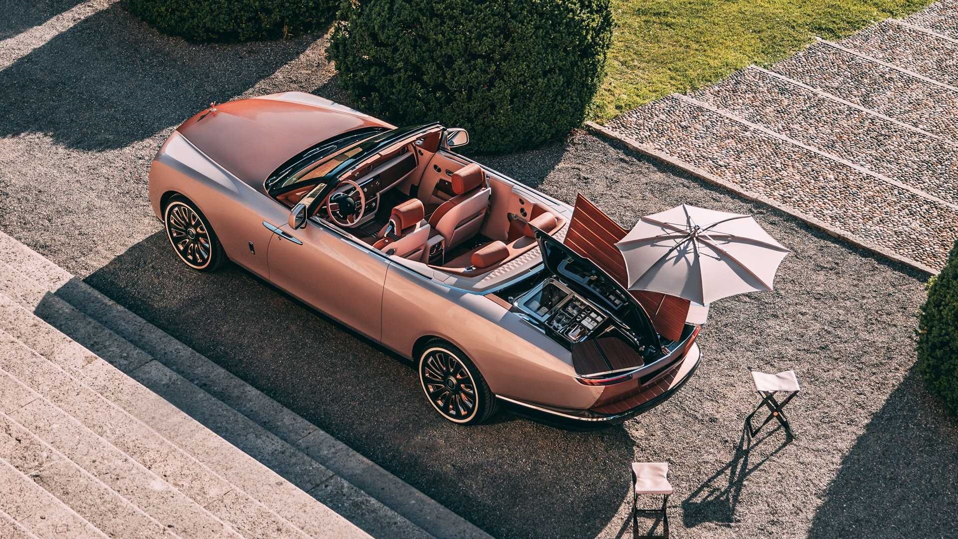 近日,劳斯莱斯带来了全新浮影车款,新车是该型号限量三台中的第二台,不同于早前的蓝色浮影,全新车款以珍珠为主题,采用了通体玫瑰金与铜色组合,极具奢华与优雅。不同于幻影,浮影设计理念来自游艇,采用了 drophead 形式车身,拥有倾斜的帆布车顶以及木质面板的狭长车尾。外观上延续了劳斯莱斯的家族化设计语言,使用了经典的帕特农神庙直瀑式格栅,同时配有欢庆女神雕像。内饰同样非常具有奢华感,青铜质感的面板、珠贝材质的仪表与棕色的内饰和木纹搭配相得益彰在;车漆内部混合了白色和青铜色的薄片,以使其产生深邃的渐变珠光效果,官方也称其为定制开发过工艺最复杂的漆面之一。此外最有特点的,该车有一个分体式后备箱,容纳了可展开的遮阳伞以及全套酒具和餐具等,折叠椅让汽车成为户外用餐的终极场所,完美将生活和交通工具融为一体。据悉该车售价高达 2,000 万英镑(约合人民币 1.67 亿)。