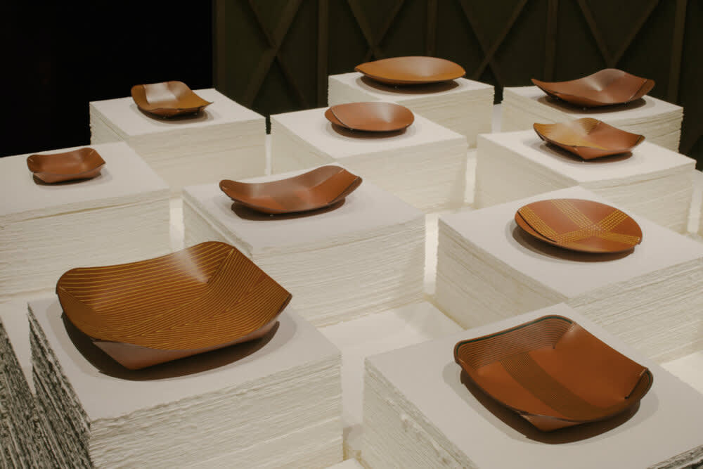 近日,Hermès 在米兰设计周上推出了全新家居系列,新系列基于本季的主题「轻盈」,在材料和颜色之间找到适当的平衡,在设计中寻求轻盈,捕捉材料的精髓,并通过创新之手的工作来丰富它。 纺织品首次成为家居系列的中心主题,推出了一系列毯子表达轻盈质感,同时将设计表达探索新知识的起点,五款羊绒作品构成了「轻盈」宣言的基础,「Surface」床罩采用羊绒制成,并带有令人惊讶的六边形图案,结合了拼接和绗缝的细致技术。此外,一些装饰小物件、瓷器和家具都彰显了此系列的独特性。 一张经过切割、折叠和手绘的皮革成为餐桌的中心装饰品;瓷器套组将太阳光线「反射」在图案表面,而由建筑师 Rafael Moneo 设计的椅子「Oria」藤制座椅使椅子既优雅又坚固。