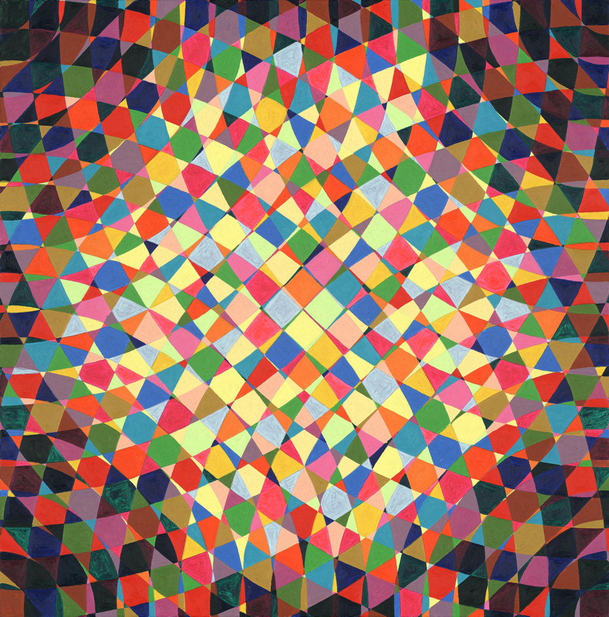 “奥普艺术”(Op Art)随着1965年著名的“眼睛的反应”(The Responsive Eye)展览在艺术世界引起热浪以来,成为“光效应艺术”的代名词,其主要特征是以色彩的呼应和几何编码的变化,结合知觉心理学的幻觉效应,通过颤动、重叠、变形、对比、错位、动感和透视等一系列抽象的语法,刺激观看者的视觉神经,实现从视觉观看到知觉心理层面的审美体验。在中国抽象艺术领域,从事此类创作的艺术家并不多,张立珩的艺术探索为艺术界提供了研究和讨论“奥普艺术”的契机。
