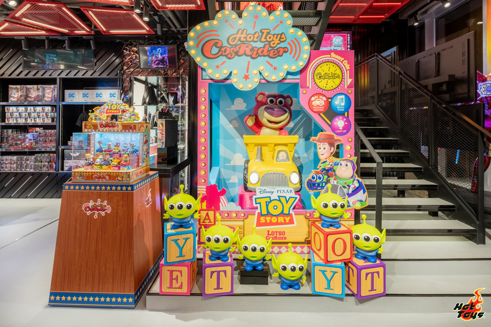 位于店铺前厅的独立玻璃展厅内,赫然陈列了约一百款由 Hot Toys 打造的漫威系列稀有的 1:1, 1:4 及 1:6 珍藏人偶;全新旗舰店也收到来自《玩具总动员》的大力支持,电影中来自比萨星球的三个三眼仔给影迷们留下了深刻的可爱形象;COSBABY 作为 Hot Toys 旗下迷你珍藏人偶品牌,全新旗舰店的开幕怎能少得了它;此外 DC 漫画和经典星战系列自然也是重点。