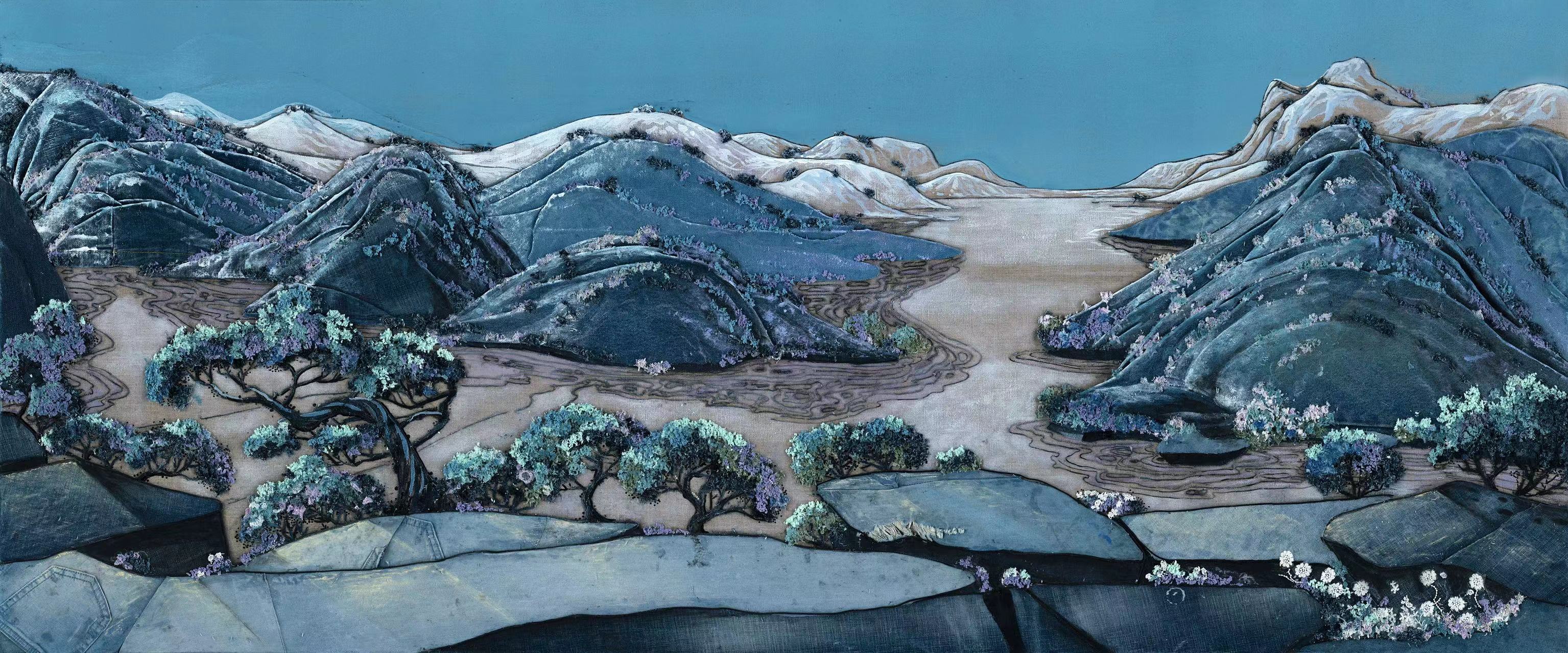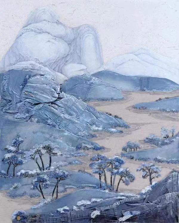 蒋宛霖 《寂》 牛仔裤综合材料 100×80cm 2020年