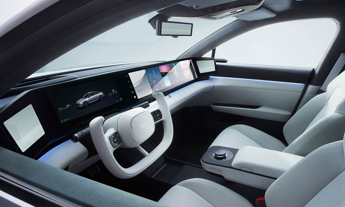 该车的正前方搭载了独特的 Media Bar,除了用来显示车标,还可以展示不同内容,包括充电进度等。汽车内部配备超长的一体式中控屏,还将集成索尼的影视、音乐、游戏等娱乐功能,并配备高通骁龙数字底盘等移动平台,以及 Epic 的虚幻 5 引擎。Afeela 首款车型支持城市驾驶场景的 L2 级驾驶辅助,预计在 2025 上半年开放预售,同年正式开售,首批交付时间为 2026 年。