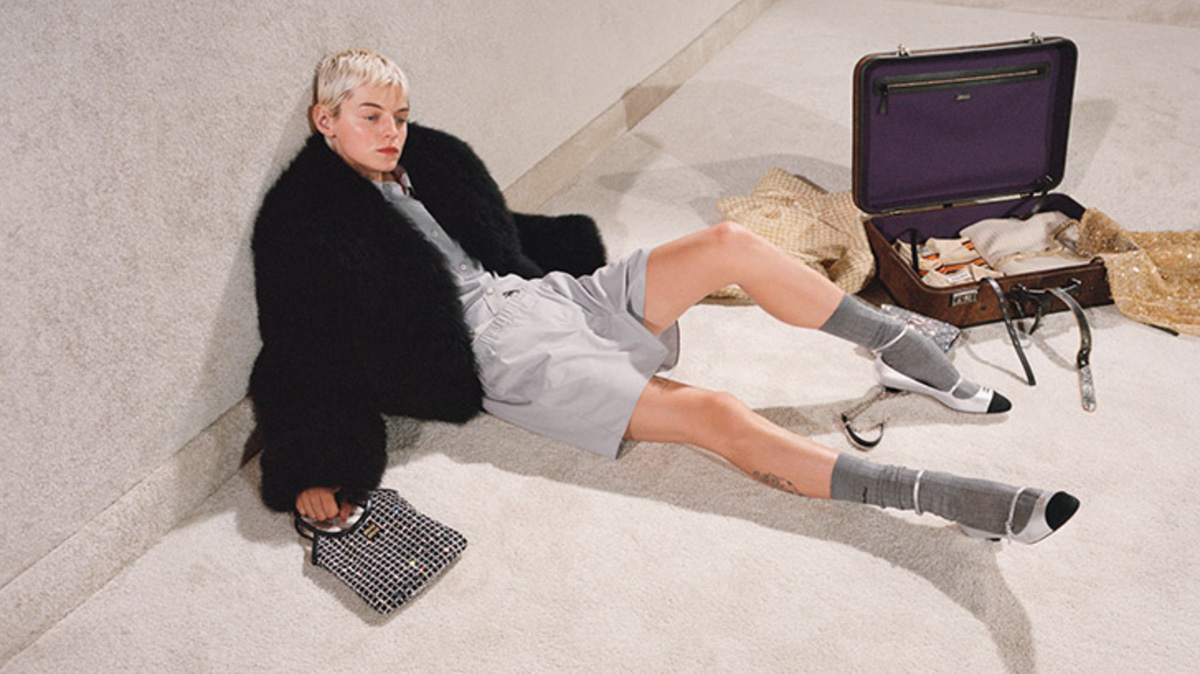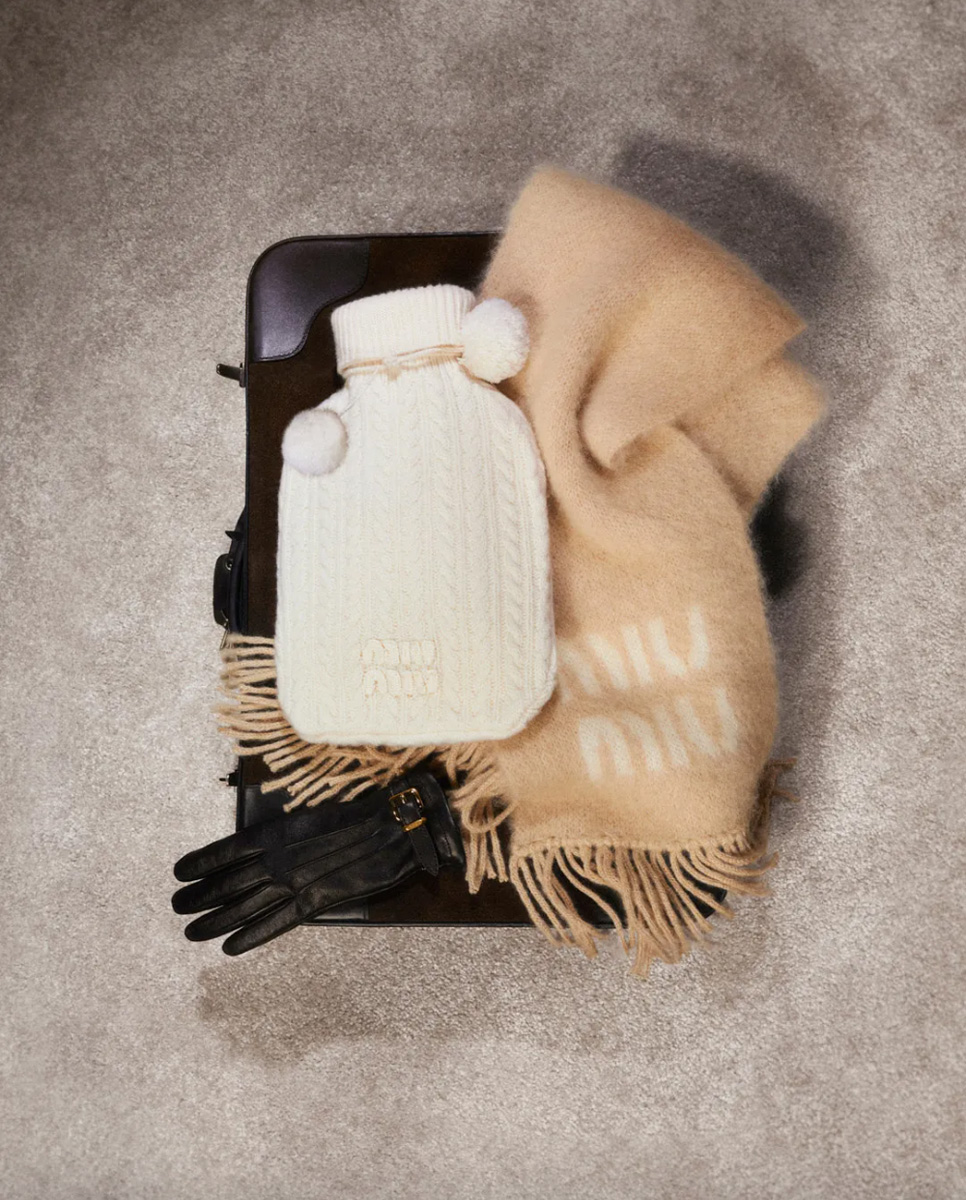 Miu Miu 发布了其 2023 完整假日系列,其中包括成衣、配饰和生活用品等节日佳选。成衣亮点包括黑色裙装和镶有水晶的欧根纱设计;光面皮革单品搭配撞色衣领和金色纽扣;羊绒开衫和平纹针织品配有运动装风格的品牌饰边。印有品牌标志的发夹、天鹅绒拖鞋,甚至热水瓶则出现在 Miu Miu 华丽的服装和标志性包袋旁边。该系列亮点还包括双色玛丽珍平底鞋、厚重首饰和眼镜等单品。此外,Miu Miu 还首次与 Polaroid 和 Marshall 合作推出了科技产品——带有徽标肩带的相机以及装在黑色 Miu Miu 皮革盒子中的耳机和扬声器。