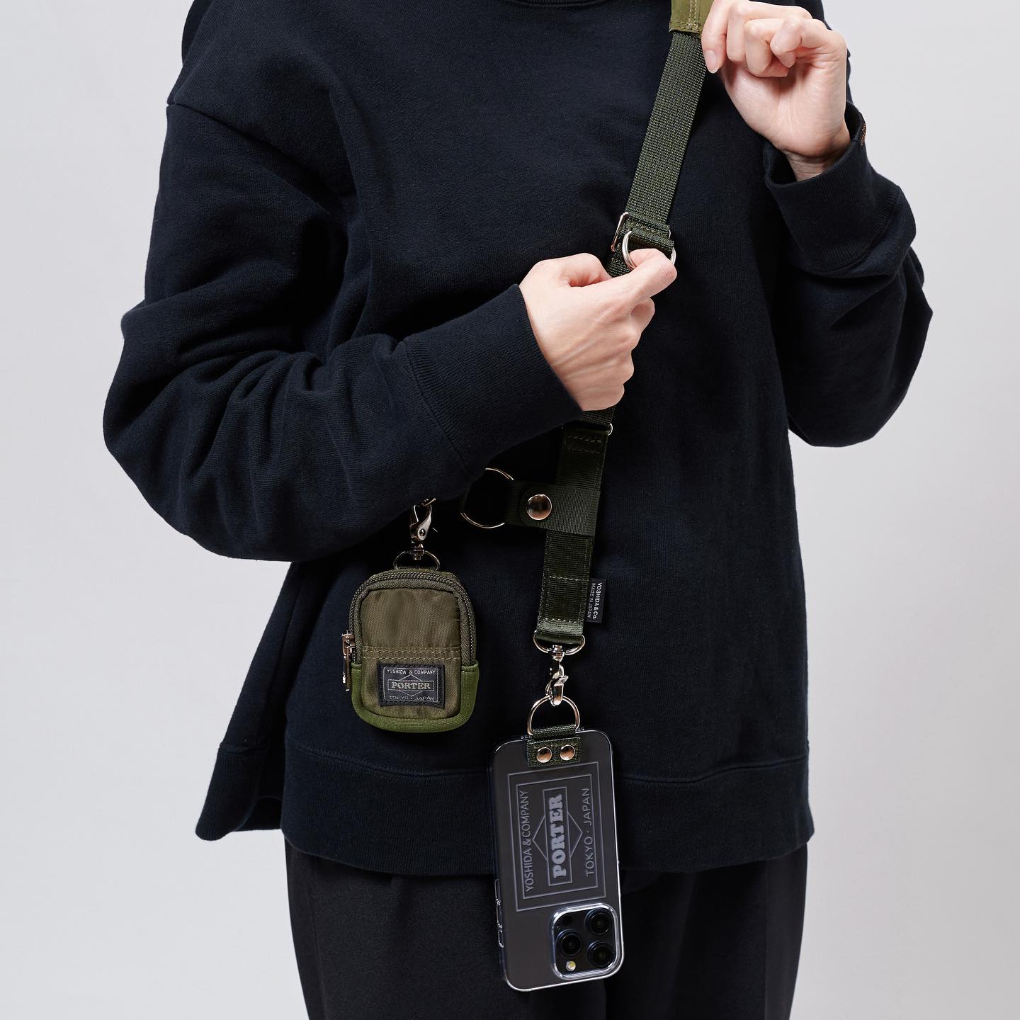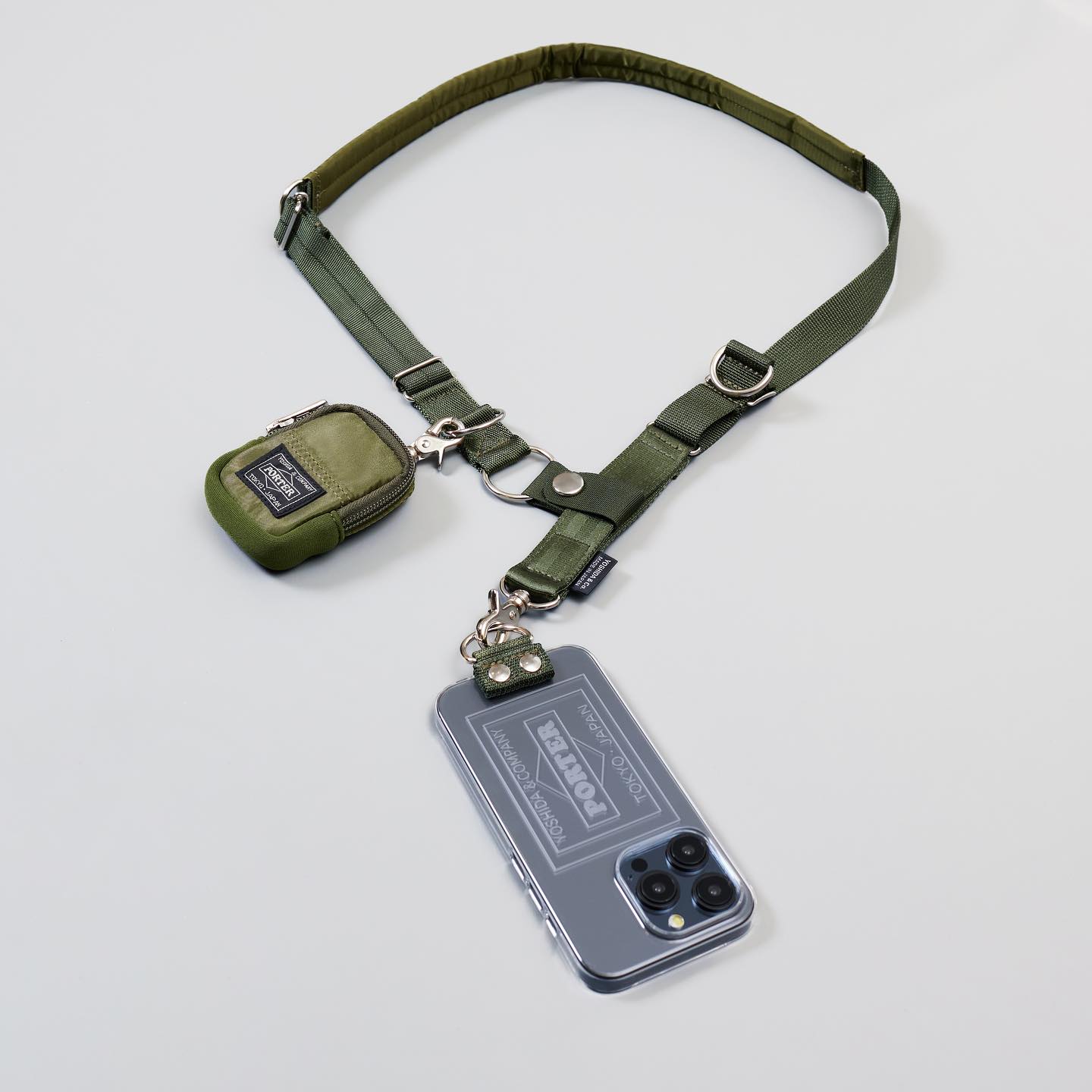 PORTER 近日发布了一款可斜挎在身上的 iPhone 保护壳及背袋——Shoulder Air Jacket™ with Pouch for iPhone 15 Pro。该产品采用 Air Jacket™ ,极为轻薄,壳上的品牌标志通过传统工艺「江户切子」技术精妙地展现。肩带是吉田包的原创部件,采用通用部件和尼龙带的独特组合缝制而成,一键即可轻松调节。带子部分采用五种不同类型的编织尼龙,在单一颜色中营造出精致的细微差别。随附的小袋可存放无线耳机等个人物品。该款单品现有黑色和橄榄色两种颜色选择,均仅在 PORTER 门店和 yoshidakaban.com 线上有售。