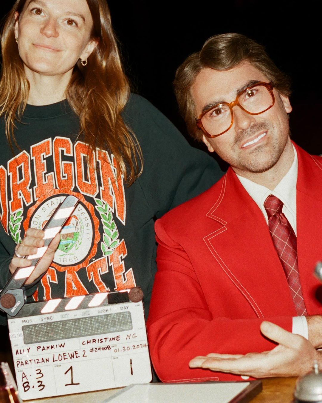 该片浓缩了 LOEWE 的幽默与前卫风格,由创意总监 Jonathan Anderson 指导,Ally Pankiw 作为导演,电影明星 Aubrey Plaza 和 Dan Levy 主演,著名发型师 Michelle Ceglia 担任妆造。