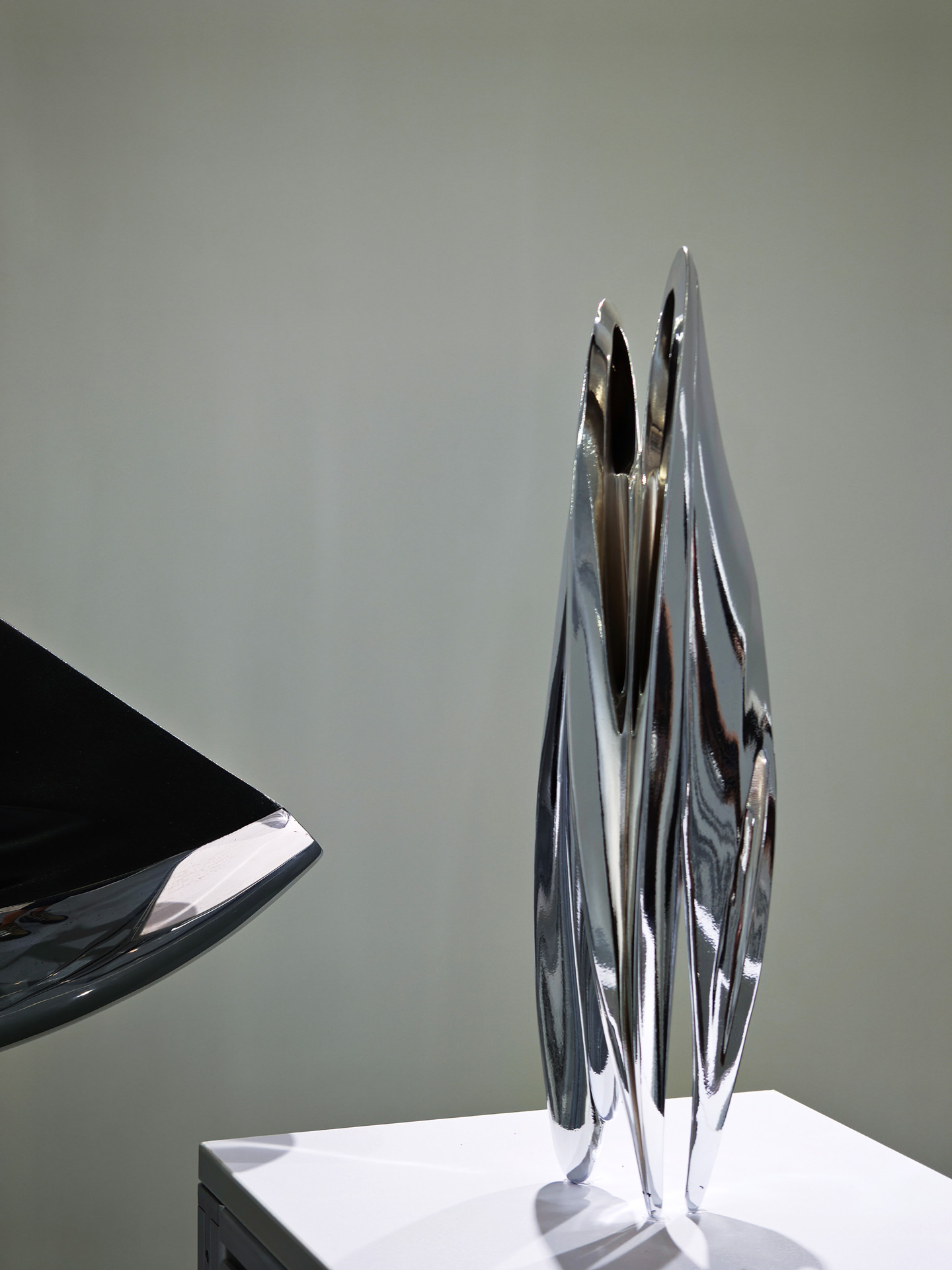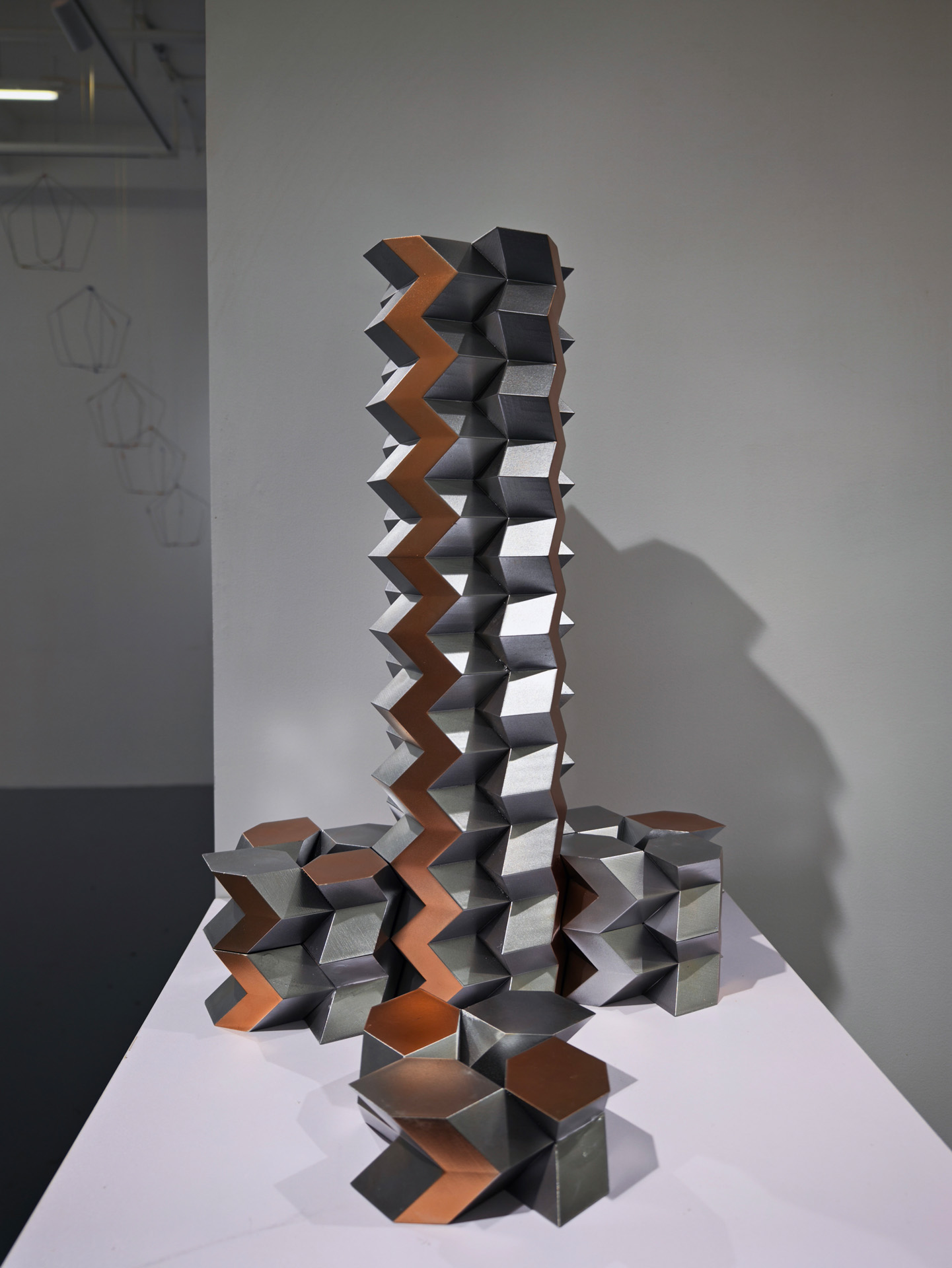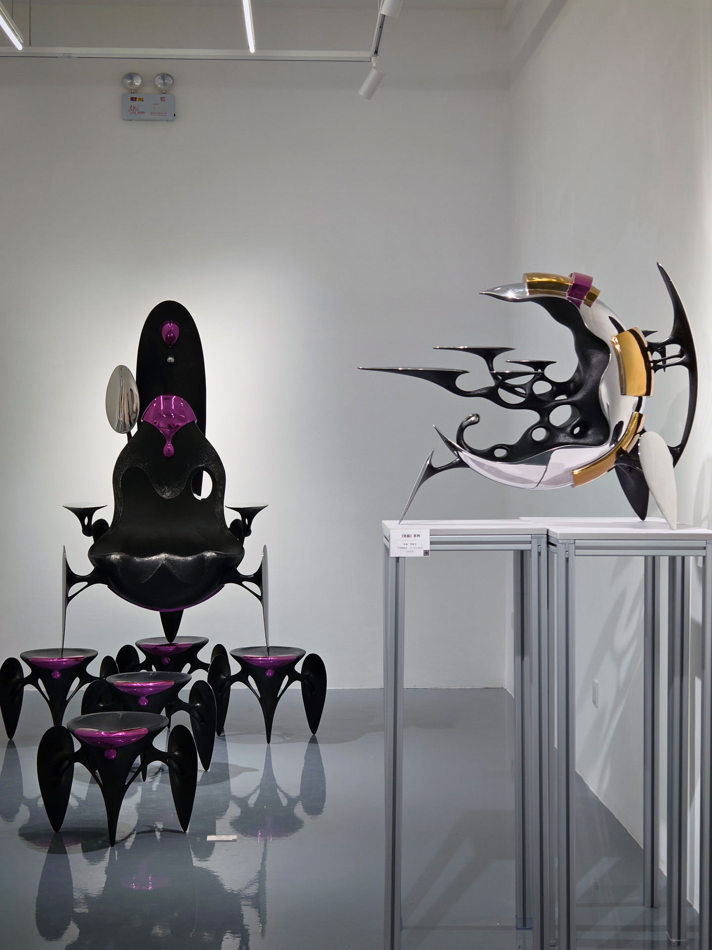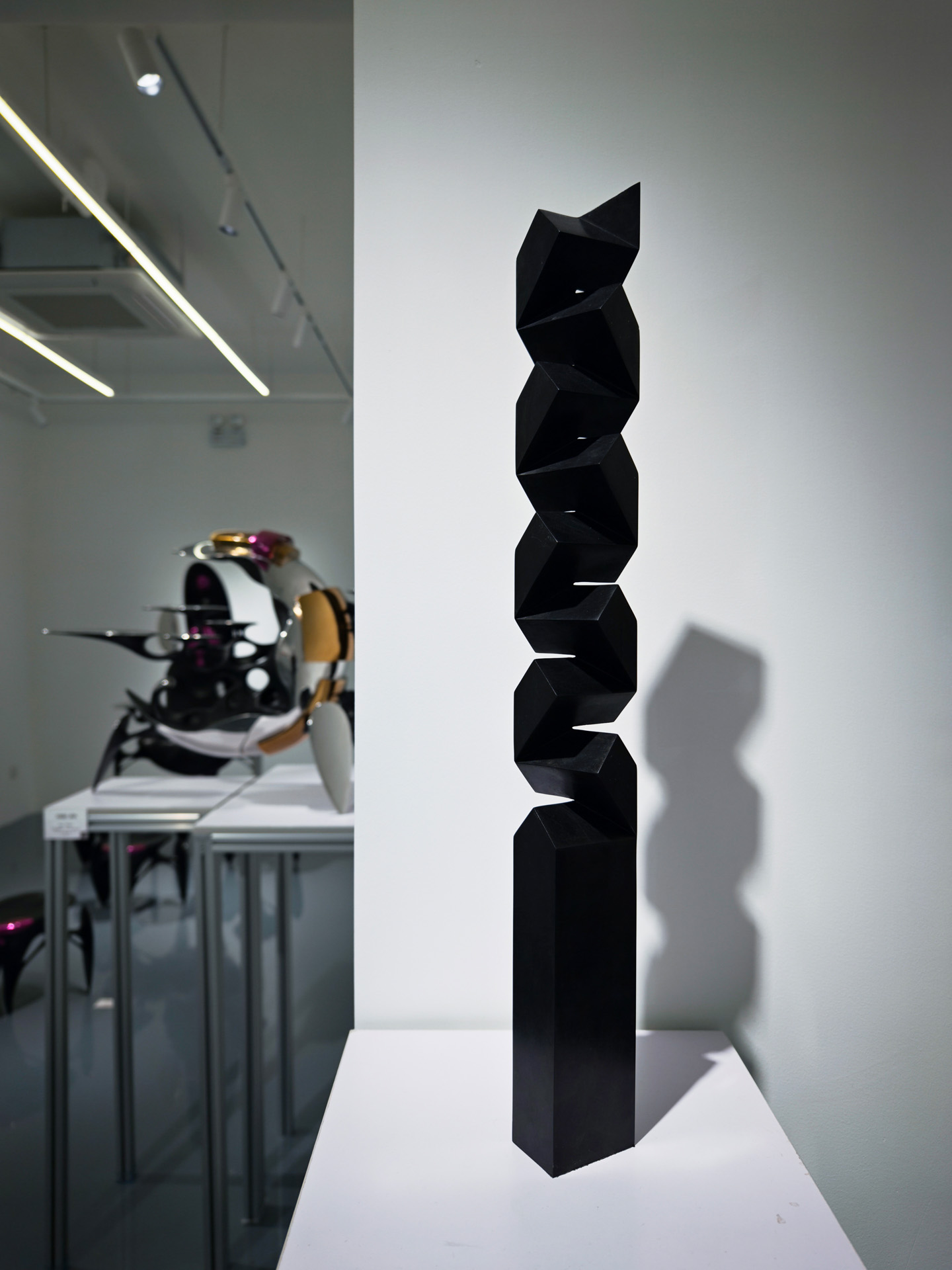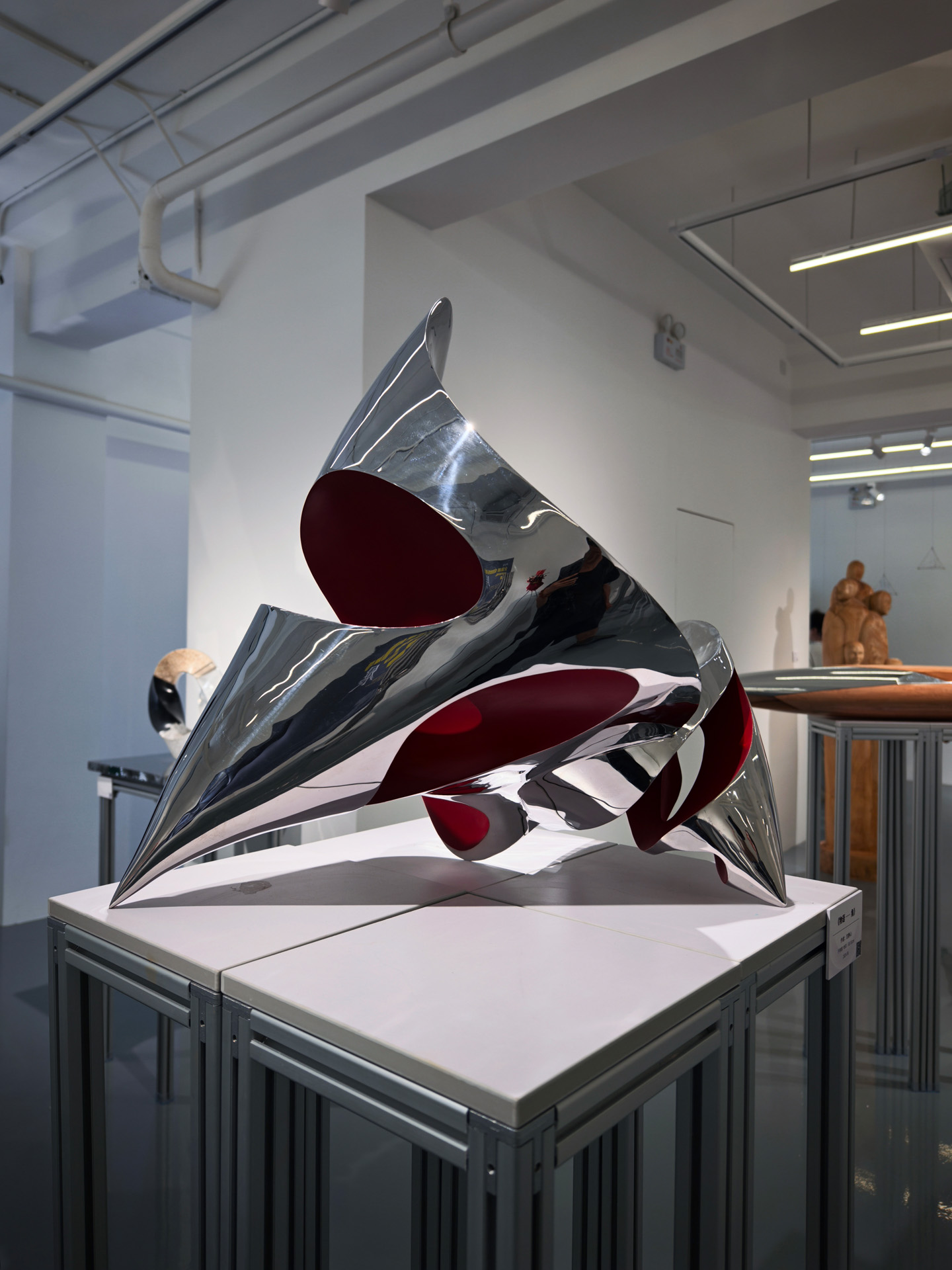 本次展览以原创为学术概念,集中展出了松尾光伸、靳青青、袁宏、朱林、罗彬文、钱军、马凯、邓浩、甘静心、唐盆、李铭洋、唐江吟、陈世峰总计13位艺术家的40余件雕塑作品。这些凝聚艺术家心血与智慧的作品创意独特,材料丰富,形式多样,既有雕塑学科专业中传统的手工劳作技艺,也有现代科技如3D打印的创新手法,充分展现了艺术家在雕塑创作上的多元化探索。除了木雕凿刻、琉璃制作、大漆制作以及金属铸造、抛光等方面的工艺与技巧,着色工艺成为本次展览作品创作与材料使用中的创新亮点,让原本是防腐、装饰的功能增加了艺术表现的内容,模糊了材料使用的边界,也引导了新的雕塑欣赏美学。在原创精神感召下,学员们触摸、探索当代雕塑艺术的新边界,体现出对材料、空间和观念的重新定义。