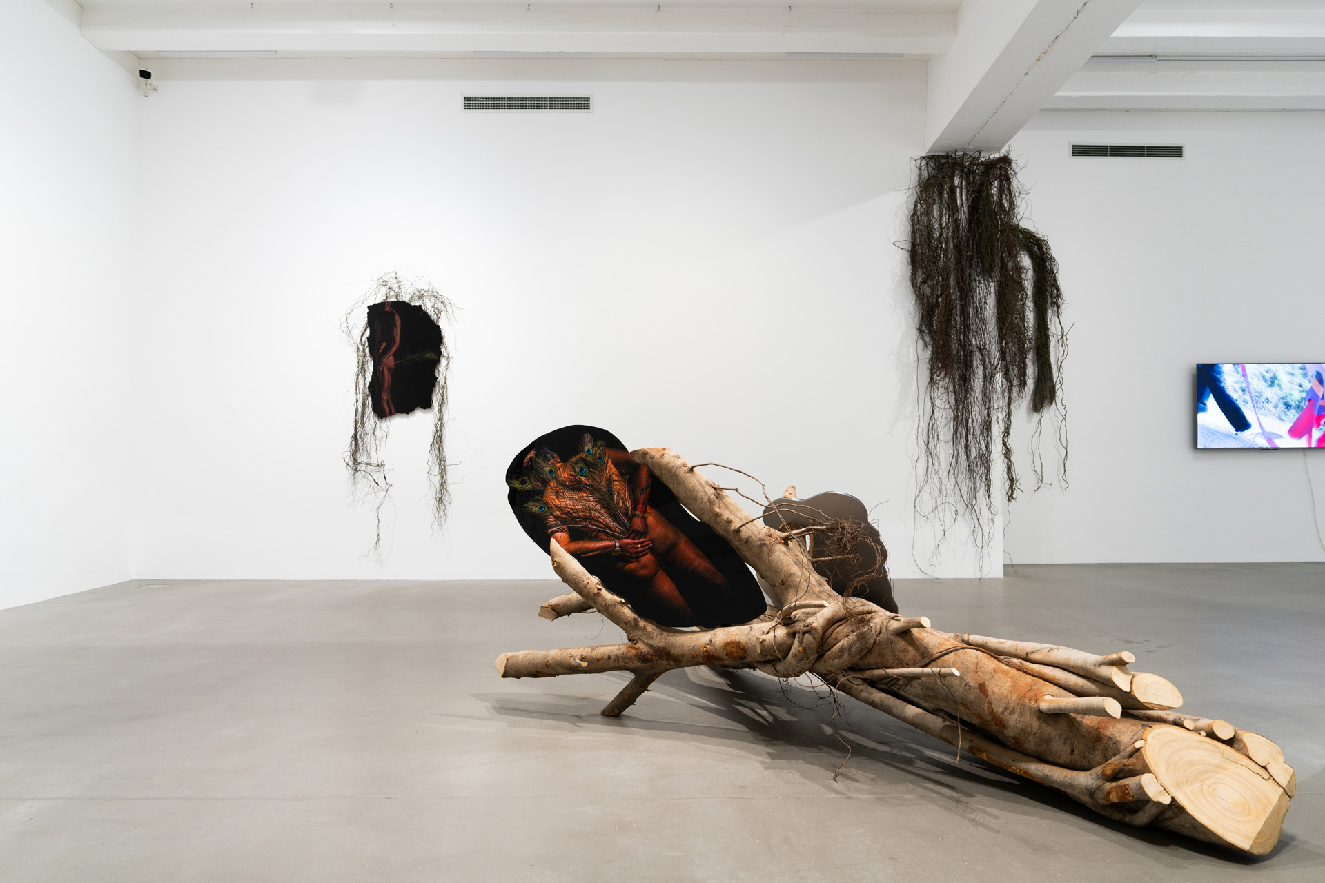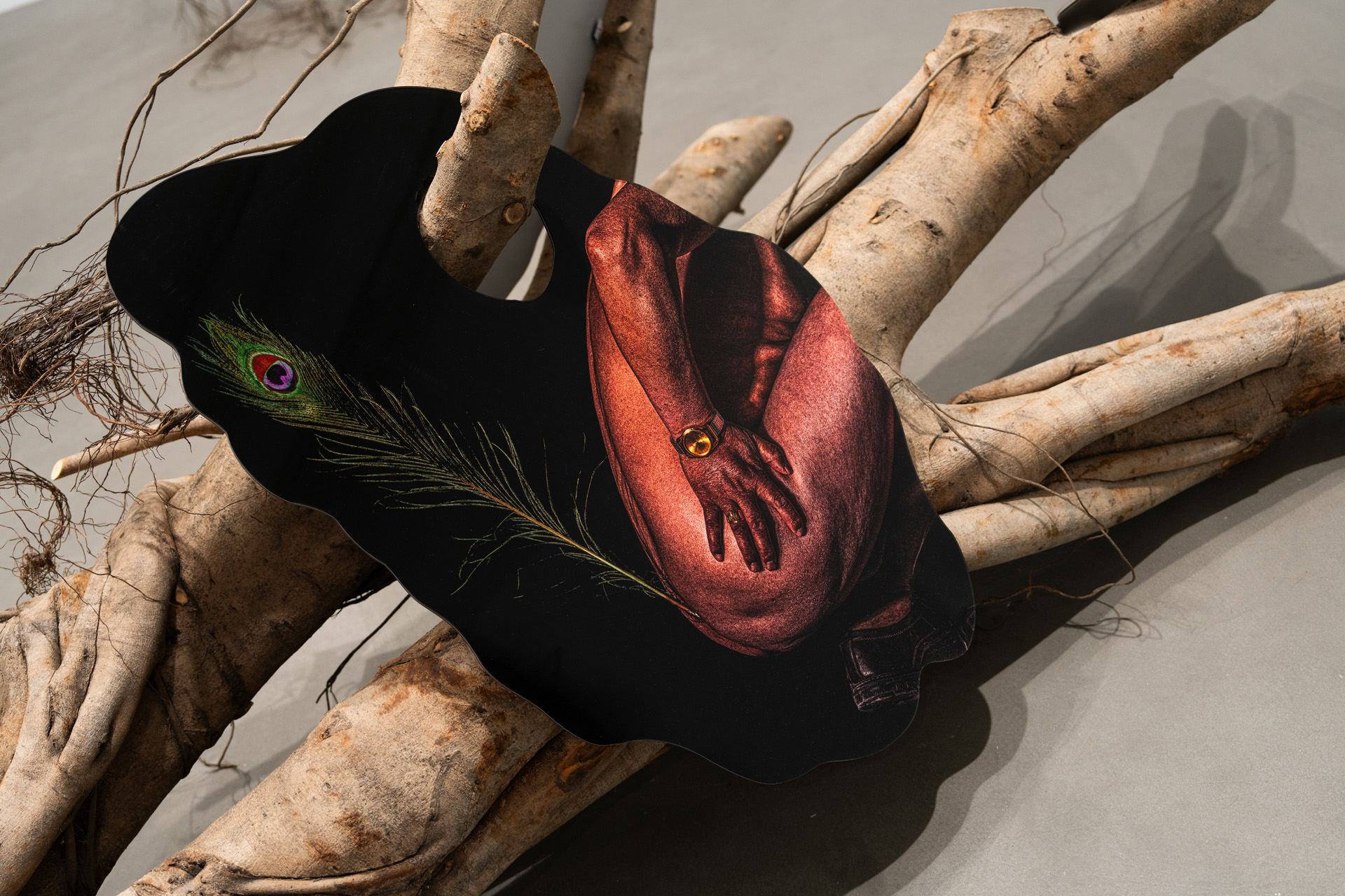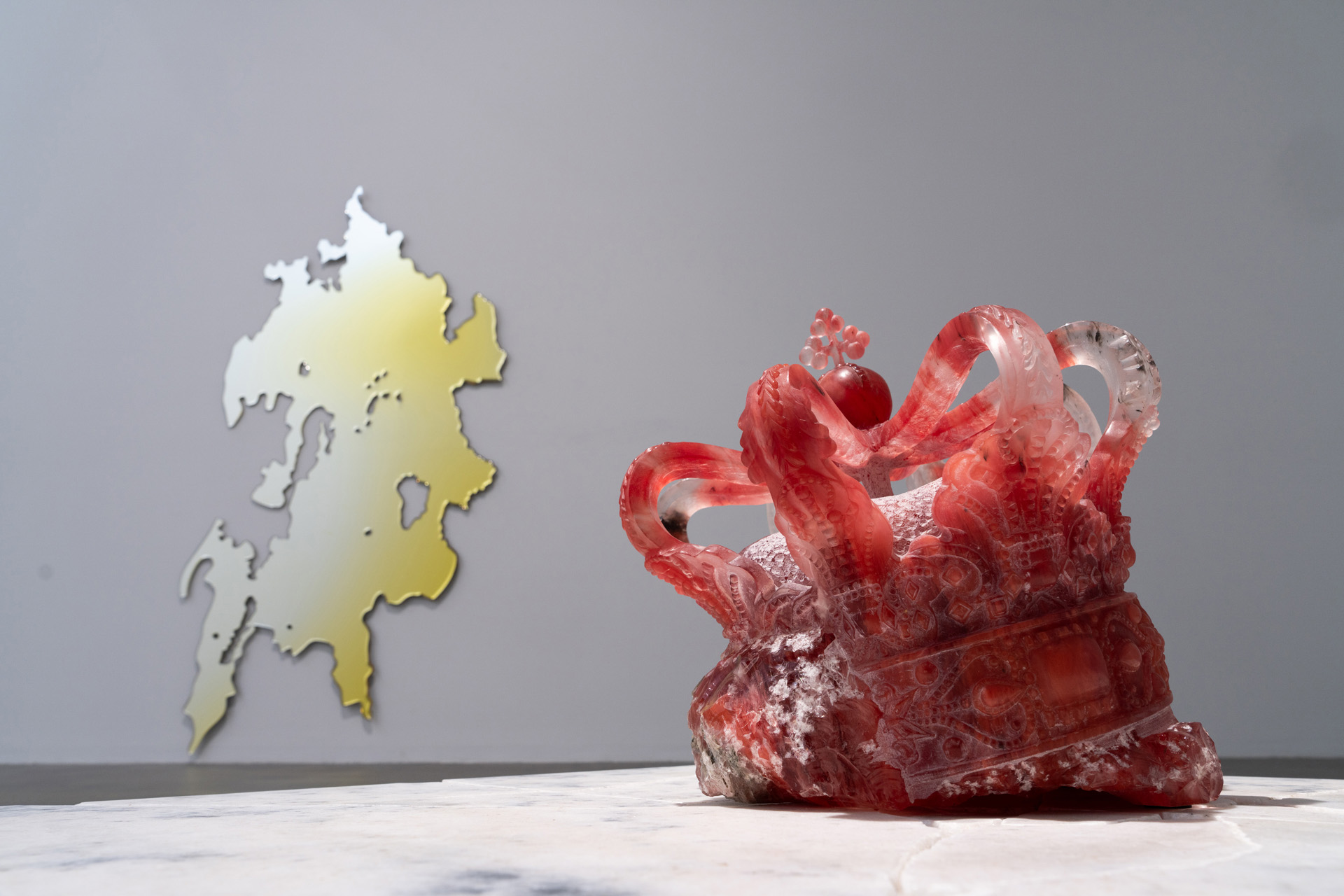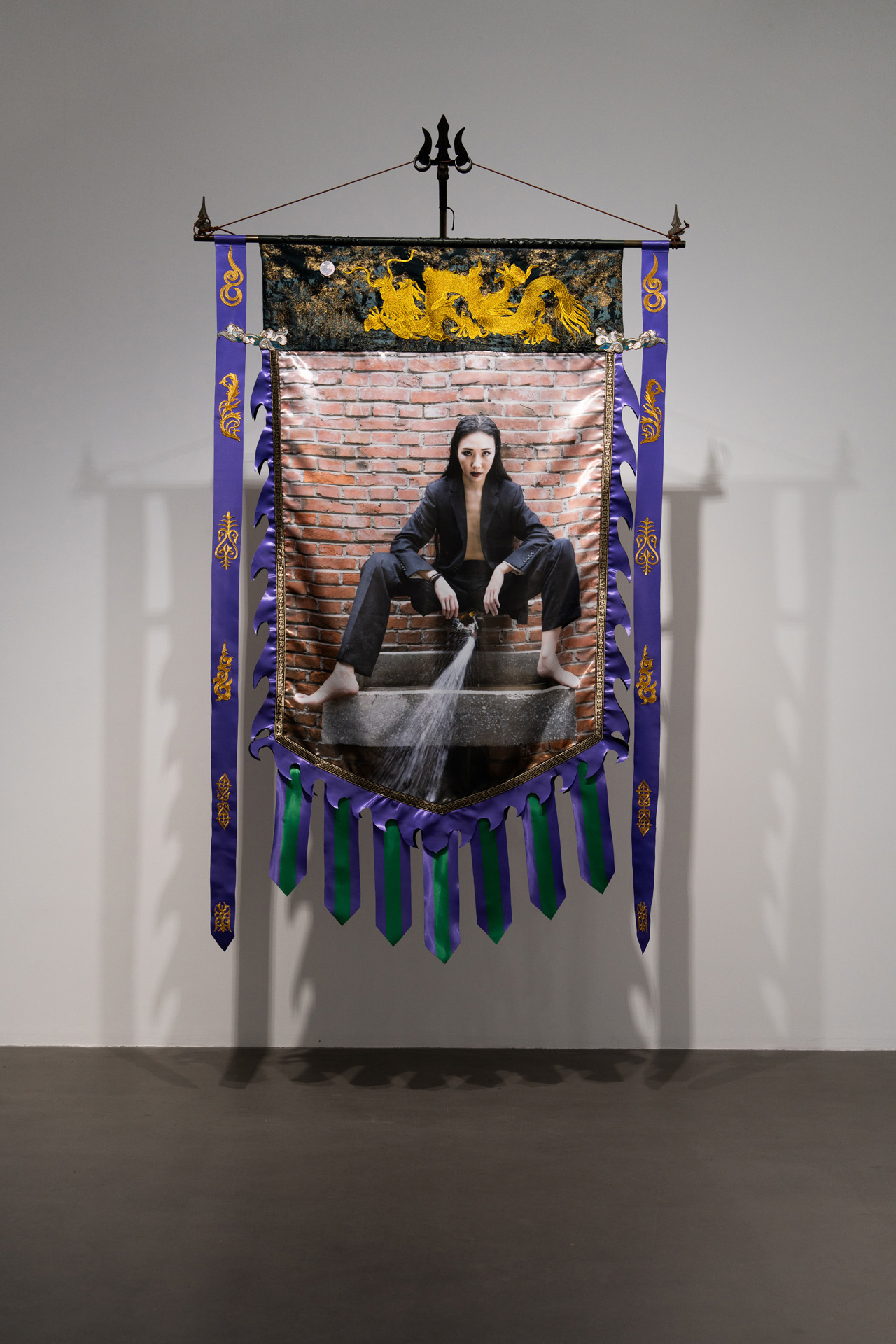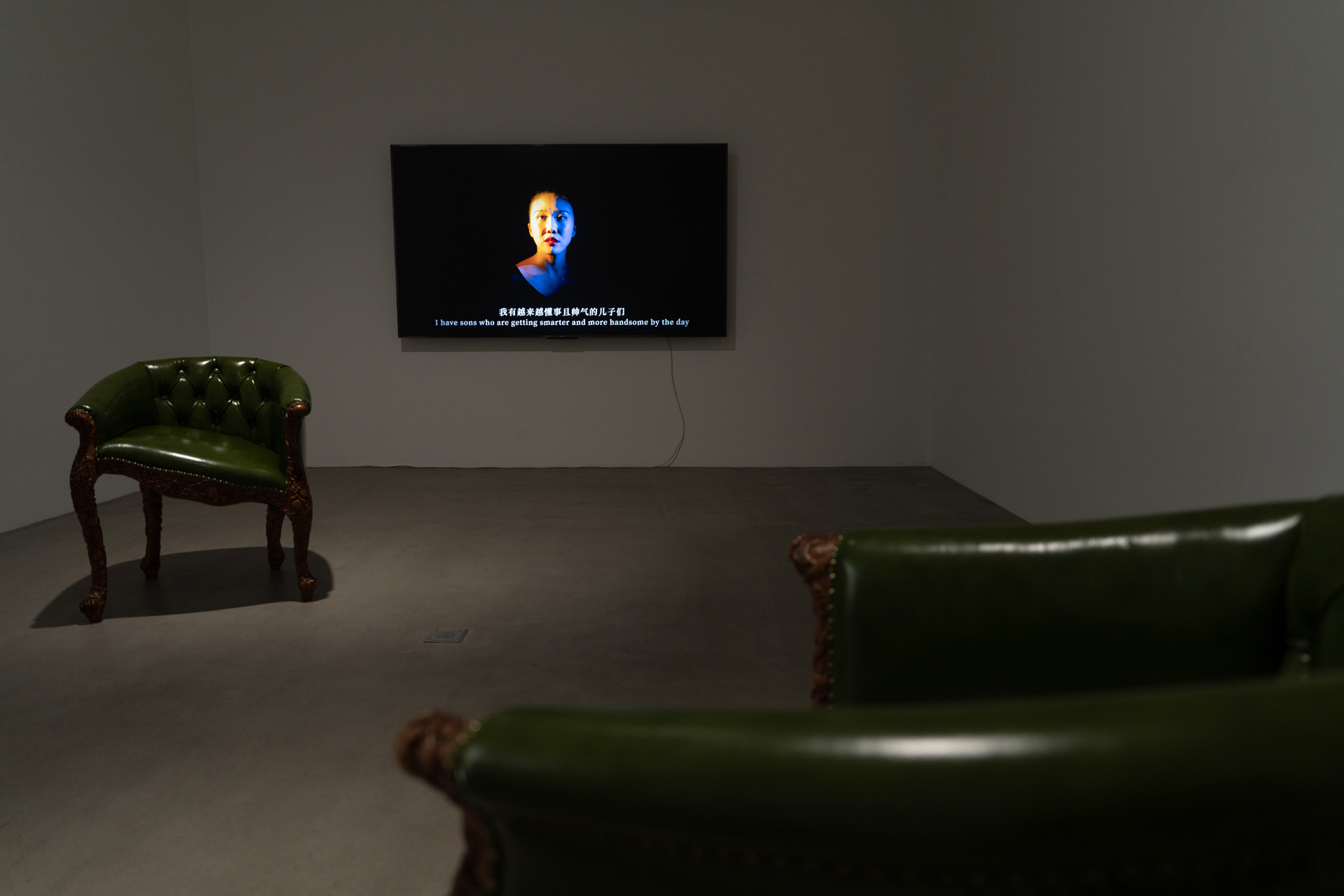 即使是普通观众站在曹雨作品前,也很容易会发现艺术家能用很直接的方式,让作品或作品名称去“幽你一默”。驻足少许,又仿佛也能会心一笑,原来是一本正经的搞笑,偶尔遇到一件两件看进去了些的话还颇带泪感。当代艺术里平实的一面,可能也表现在“化粪池”里的《画饼》,或是真有倒影的《撒泡尿照照》,或是要么东倒要么西歪的《活着,没什么好解释的 II 》。此次展出的艺术家用自己的头发制作的《一切皆被抛向脑后》是一个持续创作中的系列,只要发量足够,这个系列应该不会枯竭,有点期盼上百件一同展出的盛景。比较容易被忽视的很有可能是“这就有点意思了”的《天下》。当然还有稍微沉重的“欲戴王冠”的《头顶之物》,和稍早前就“著名”的《龙头 · 山河宣言》等作品值得赏味。最后你可以站在《我有》这件影像作品前用6分钟看她都有什么。
