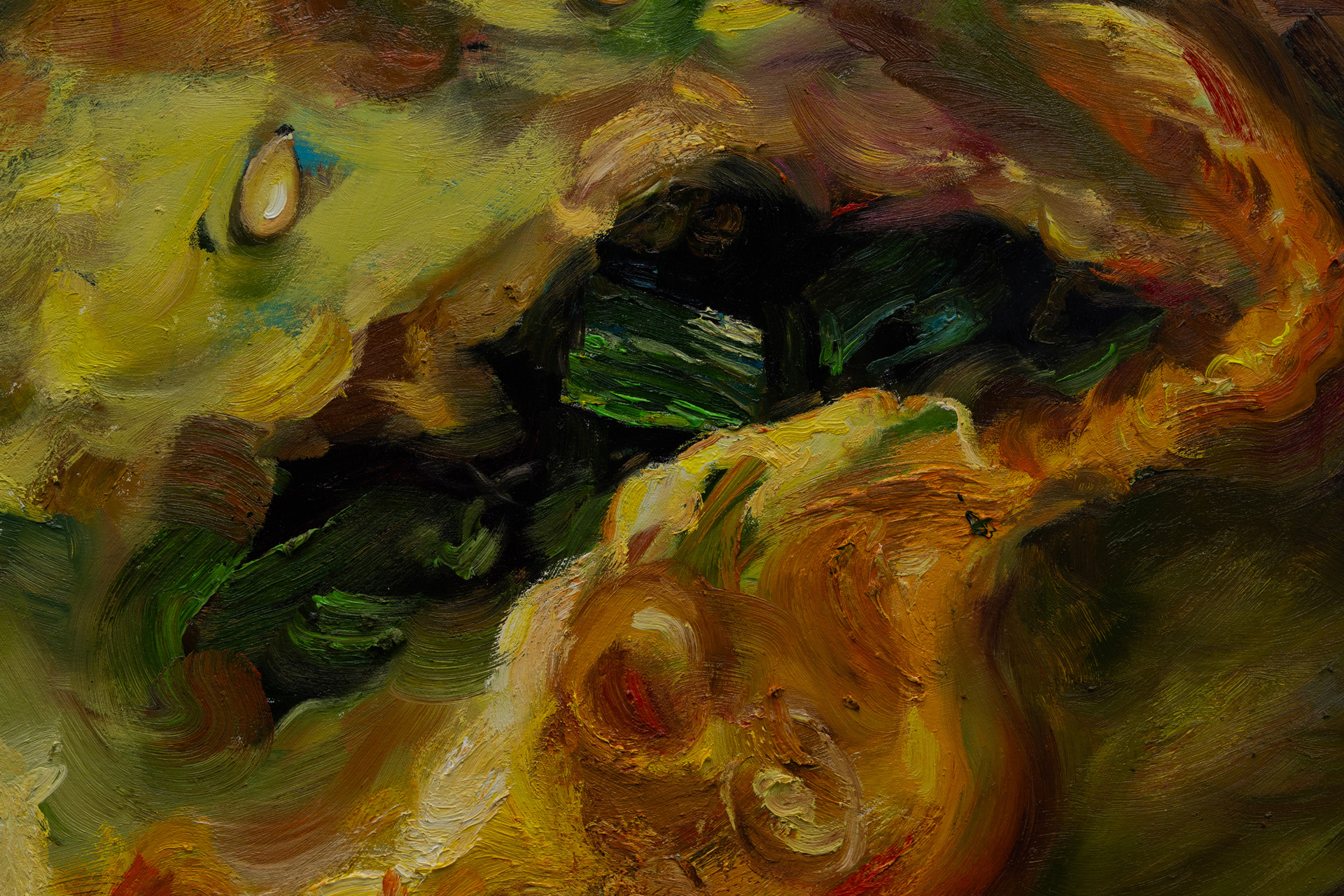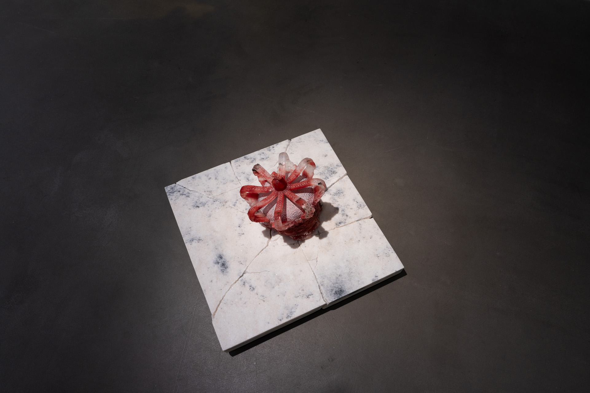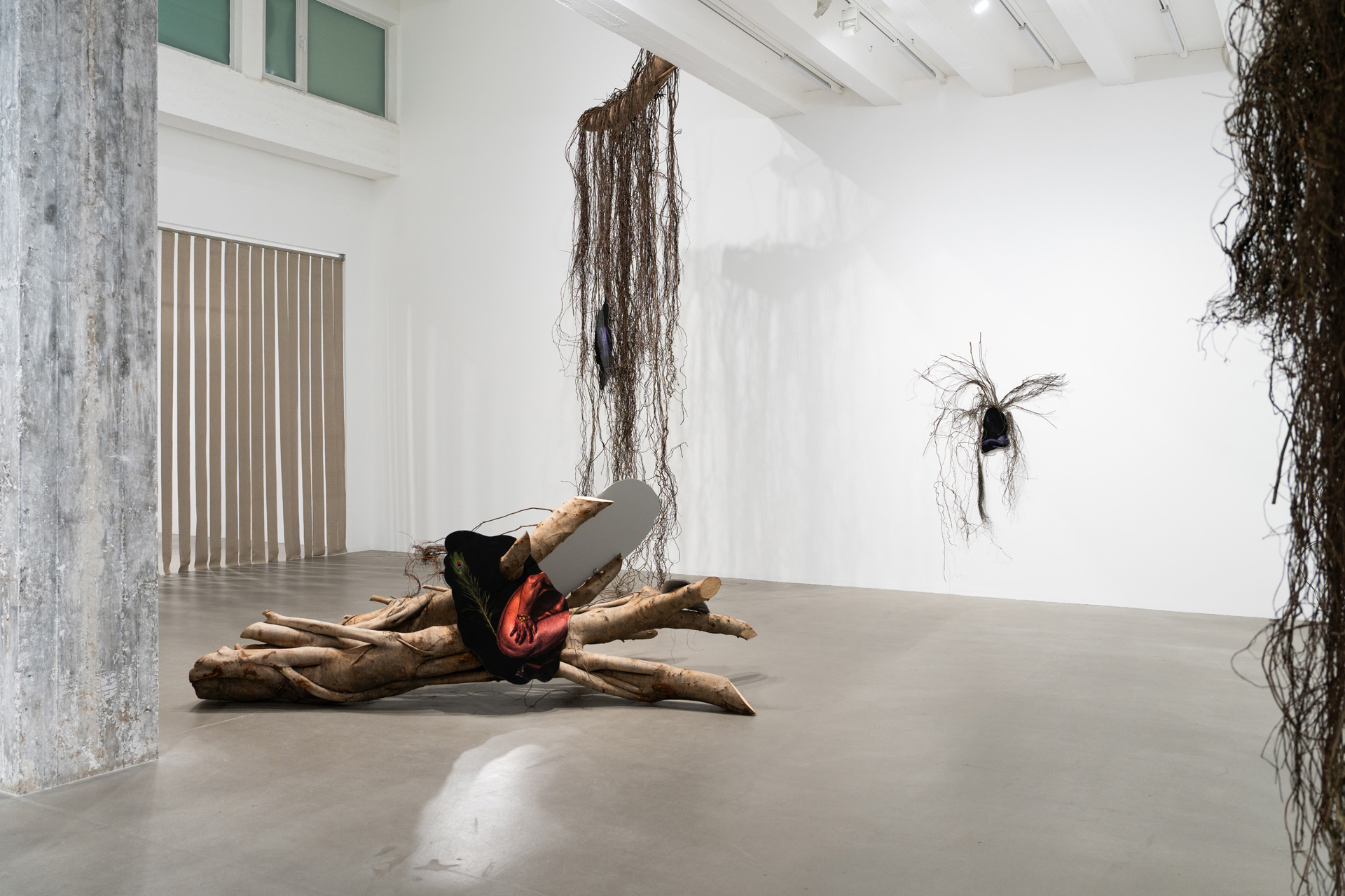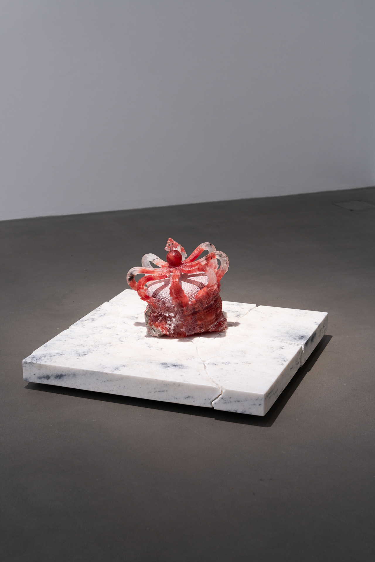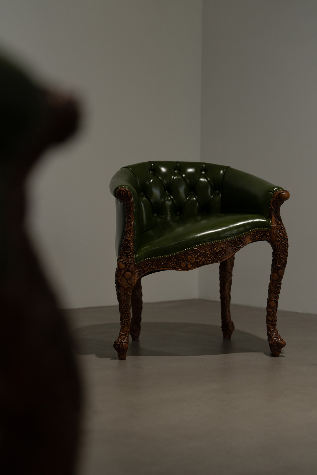 即使是普通观众站在曹雨作品前,也很容易会发现艺术家能用很直接的方式,让作品或作品名称去“幽你一默”。驻足少许,又仿佛也能会心一笑,原来是一本正经的搞笑,偶尔遇到一件两件看进去了些的话还颇带泪感。当代艺术里平实的一面,可能也表现在“化粪池”里的《画饼》,或是真有倒影的《撒泡尿照照》,或是要么东倒要么西歪的《活着,没什么好解释的 II 》。此次展出的艺术家用自己的头发制作的《一切皆被抛向脑后》是一个持续创作中的系列,只要发量足够,这个系列应该不会枯竭,有点期盼上百件一同展出的盛景。比较容易被忽视的很有可能是“这就有点意思了”的《天下》。当然还有稍微沉重的“欲戴王冠”的《头顶之物》,和稍早前就“著名”的《龙头 · 山河宣言》等作品值得赏味。最后你可以站在《我有》这件影像作品前用6分钟看她都有什么。