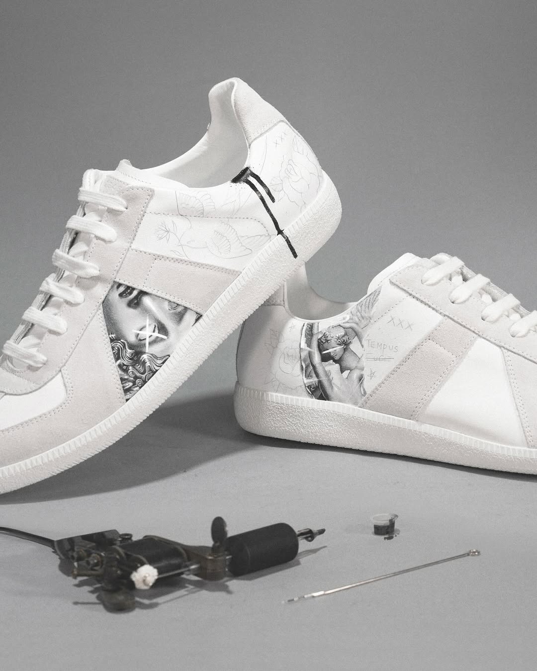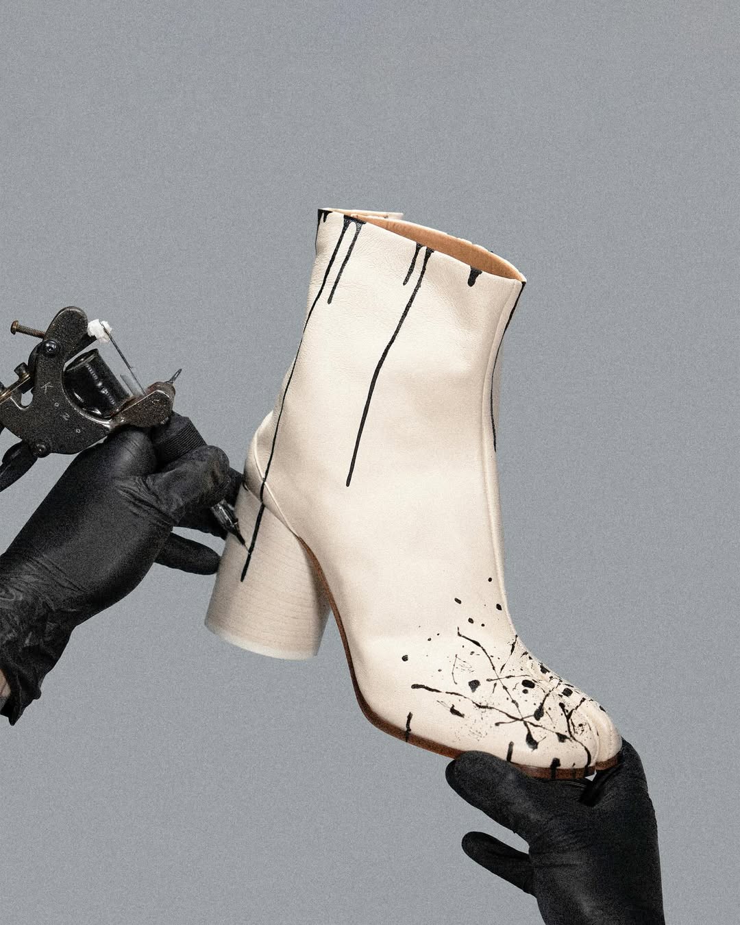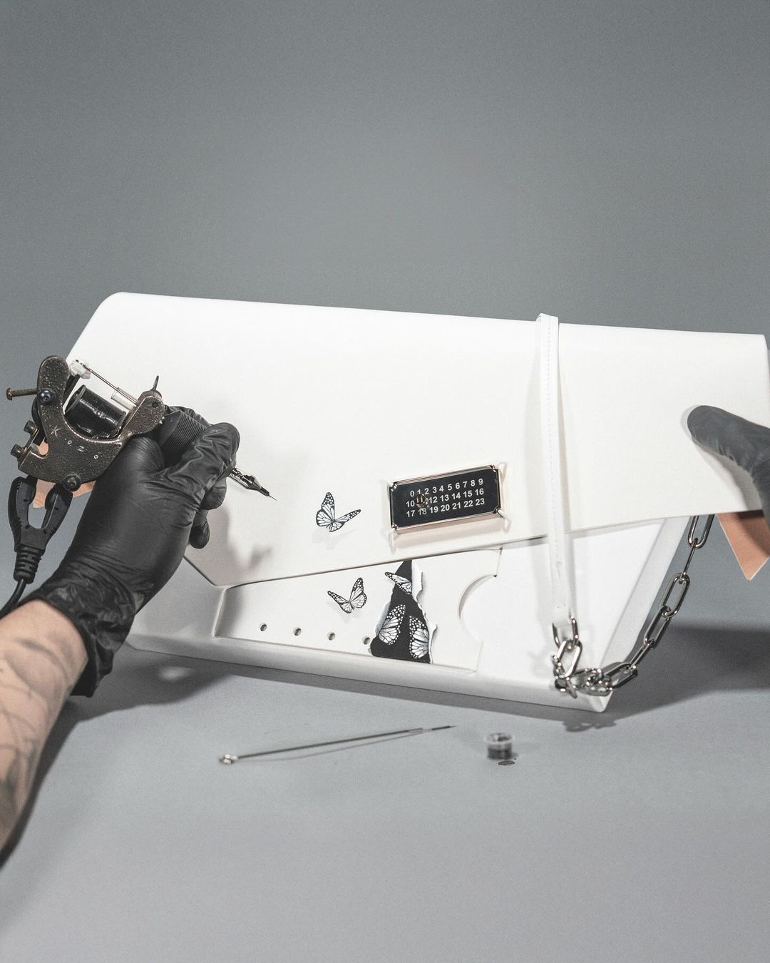 Maison Margiela 不久前宣布了与邪典视觉艺术家 Kozo 的合作,后者常常通过纹身的形式向外界吐露自身的美学世界。而双方的合作形式更是不负 Kozo「邪典」的名号,选择使用刺青机器在 Margiela 推出的 Tabi、5AC 手袋、Gentle Monster 合作款墨镜等共计 18 件皮革制品上,打造出货真价实的纹身图案而非在表面进行手绘。也是因此,在同一款产品上的图案也不尽相同,使得每款都独一无二。据悉,该系列专为迈阿密艺术周而打造,后续仅通过 Maison Margiela 迈阿密门店发售,各位不妨瞩目。